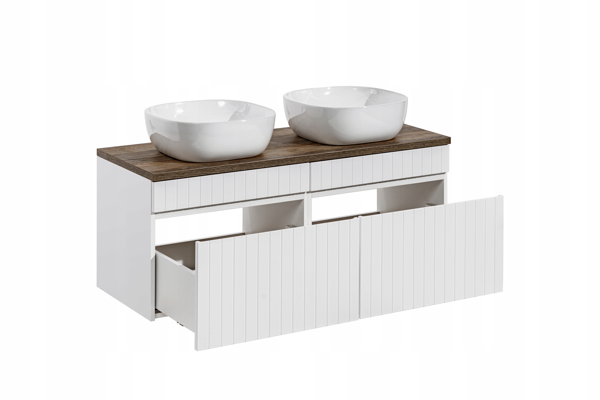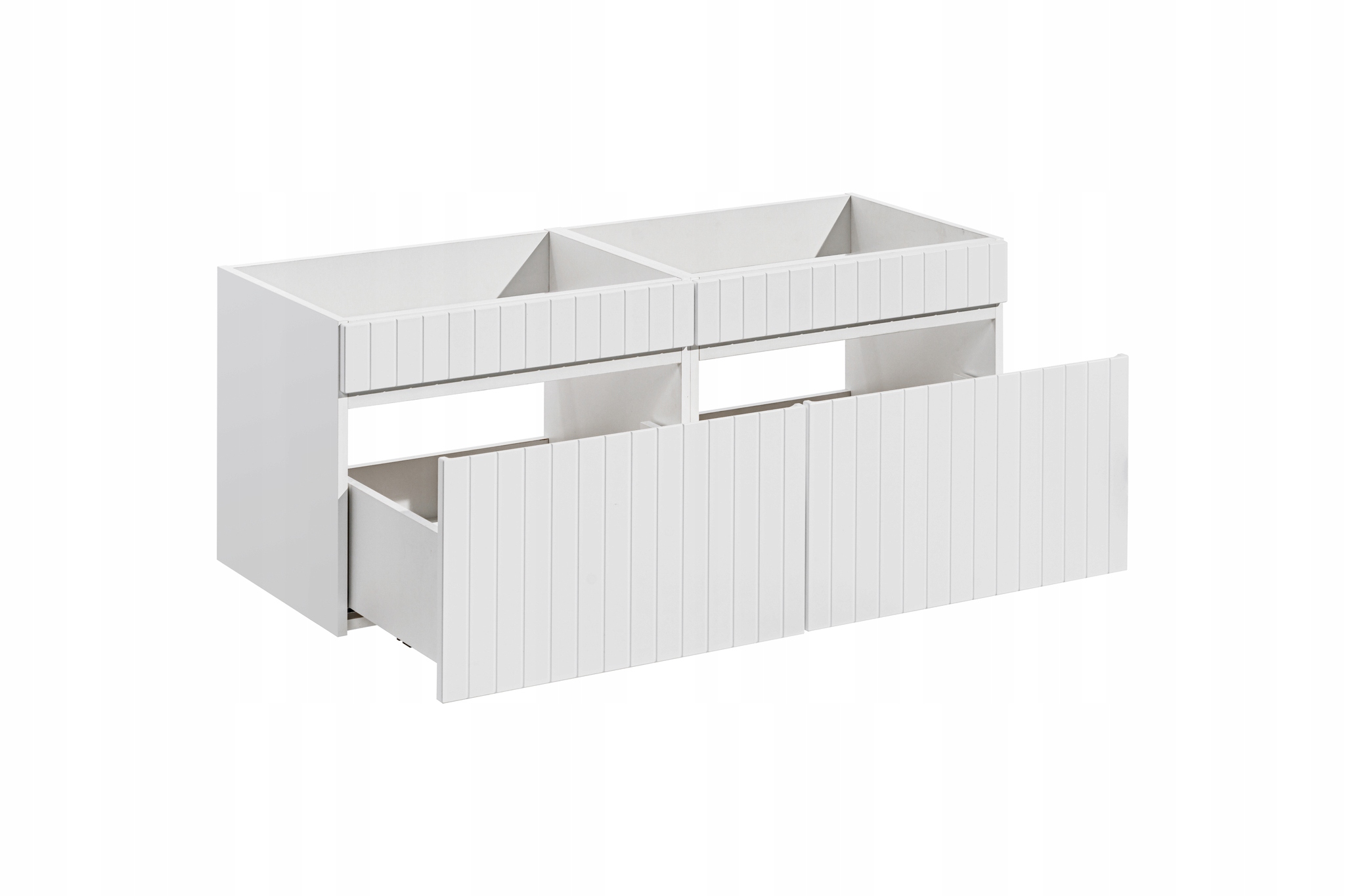 Odkryj elegancję i funkcjonalność, którą oferuje szafka łazienkowa z kolekcji ICONIC WHITE. Charakteryzuje się nowoczesnym, minimalistycznym designem oraz efektownym ryflowanym frontem, który nadaje wnętrzu łazienki niezwykłą atrakcyjność. Dwie szafki o szerokości 60 cm wyposażone w dwie szuflady z funkcją SOFT CLOSE oraz blat o długości 120 cm, doskonale sprawdzi się w każdej przestrzeni, oferując nie tylko styl, ale także wygodę użytkowania i mnóstwo miejsca do przechowywania.