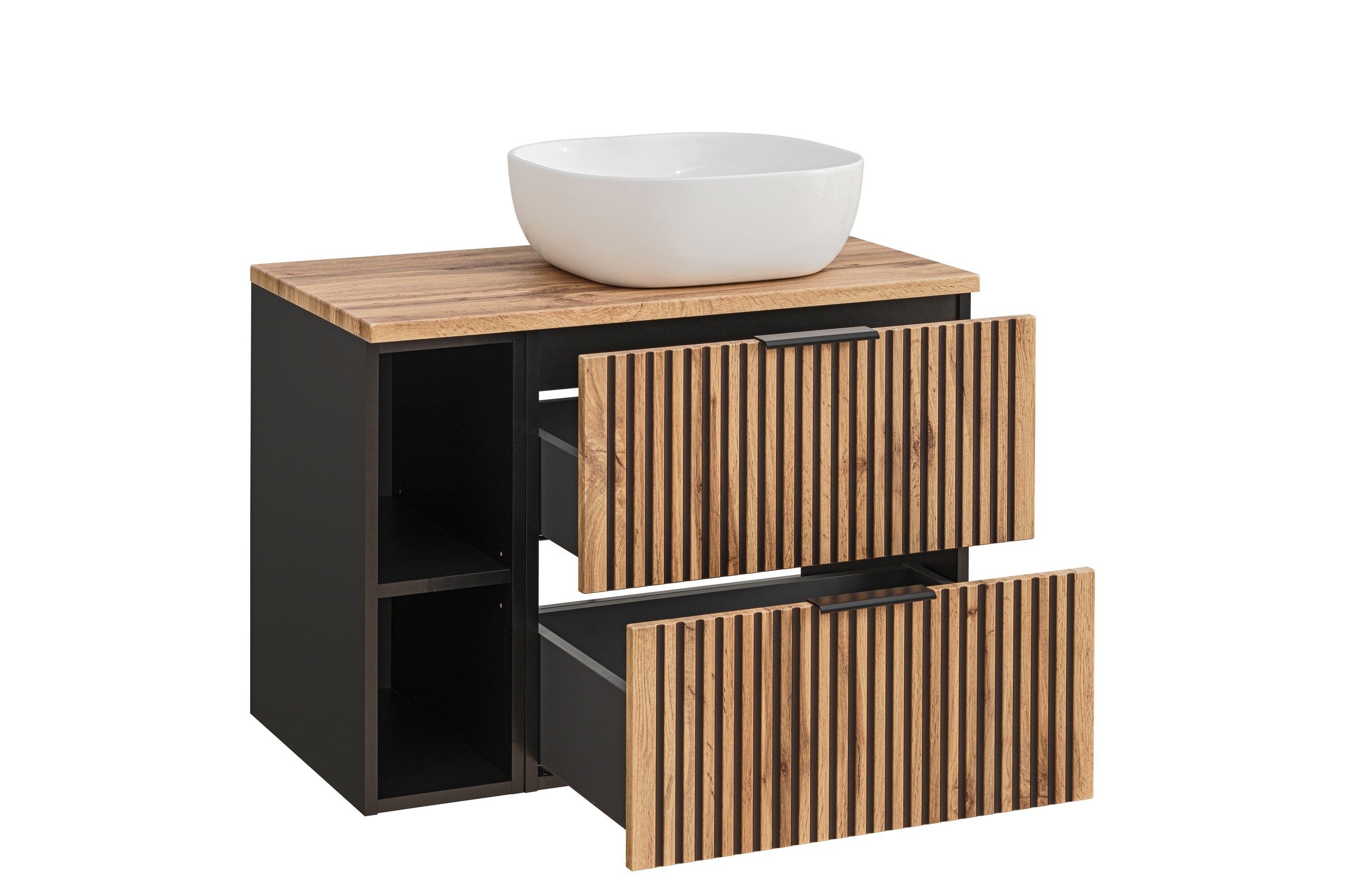Wisząca szafka z umywalką XILO 80 cm z ryflowanym blatem