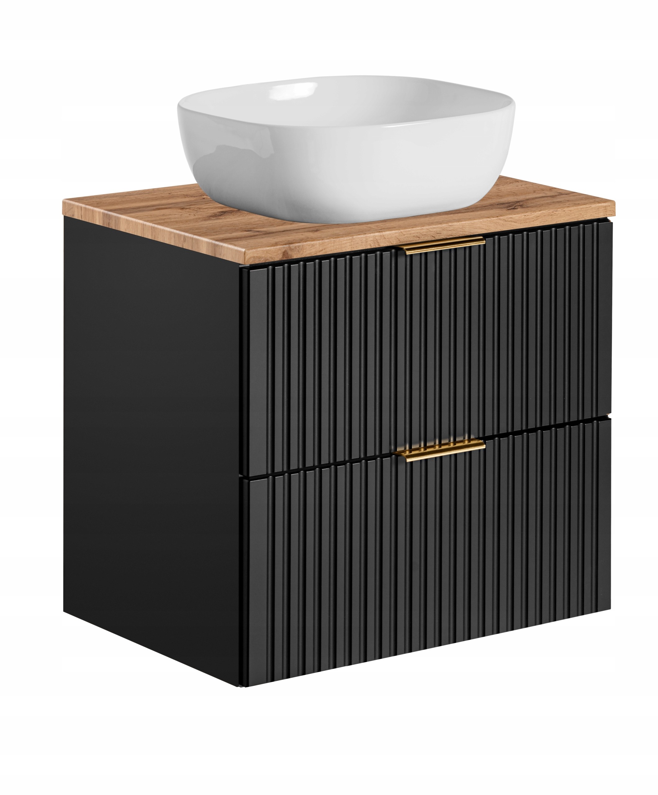 Szafka Łazienkowa Adel Black 60 cm z Blatem Dąb Wotan i Umywalką