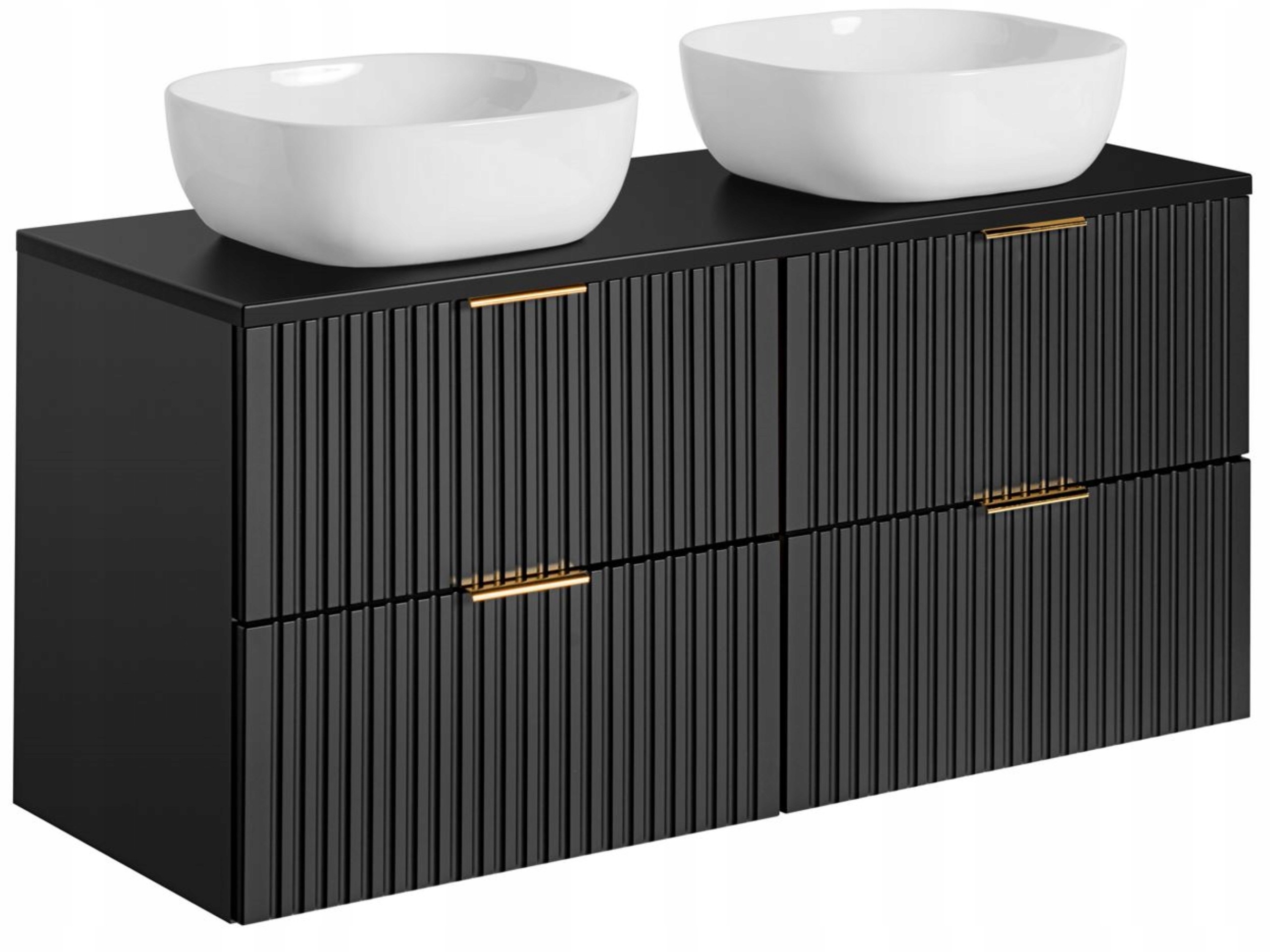 Szafka Łazienkowa Adel Black 120 cm z Blatem i Umywalkami
