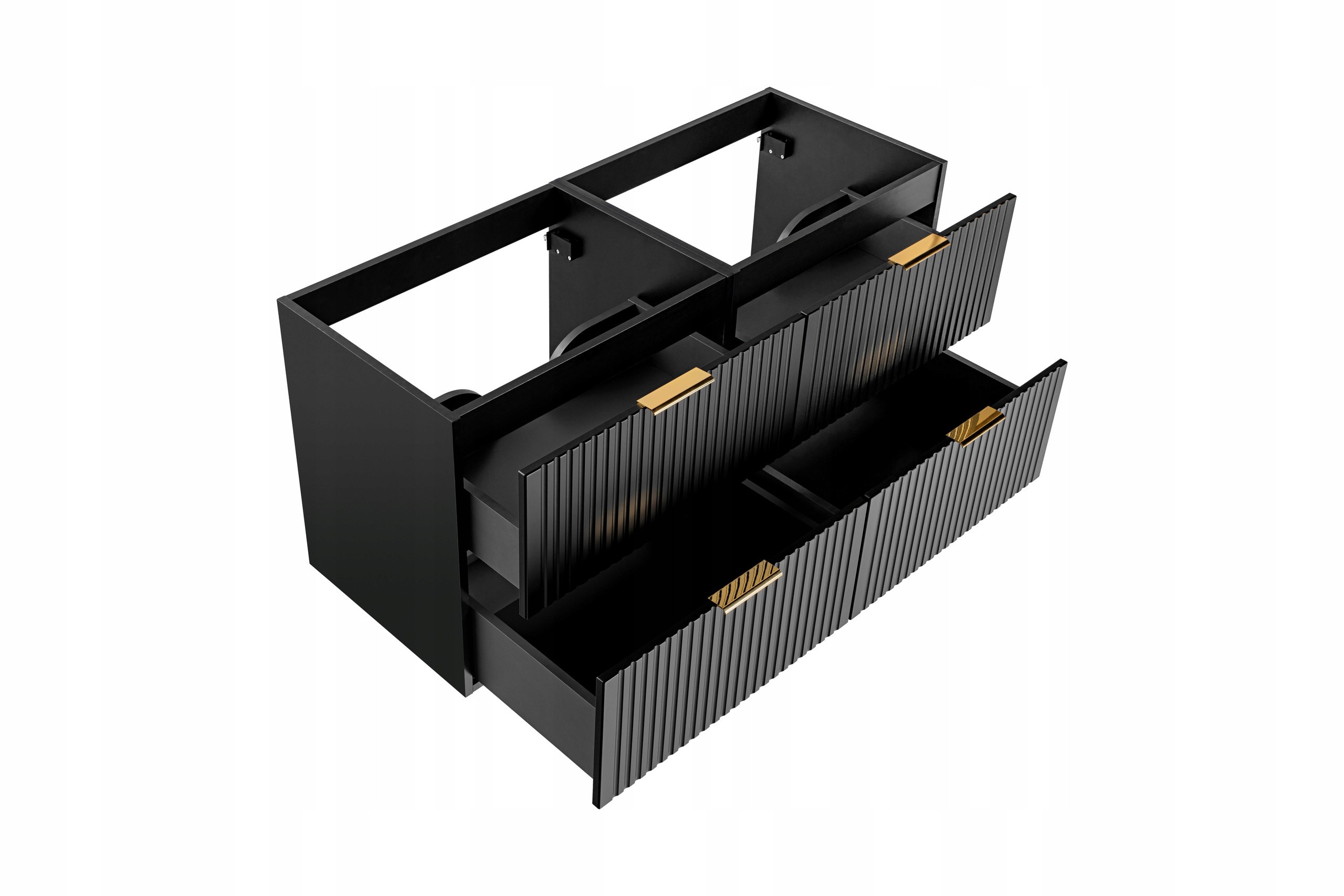 Szafka łazienkowa ADEL BLACK to elegancka propozycja, która łączy nowoczesny design z wysoką funkcjonalnością. Czarny matowy kolor i ryflowane fronty nadają meblom wyjątkowy charakter, doskonale komponujący się zarówno w minimalistycznych, jak i klasycznych aranżacjach.