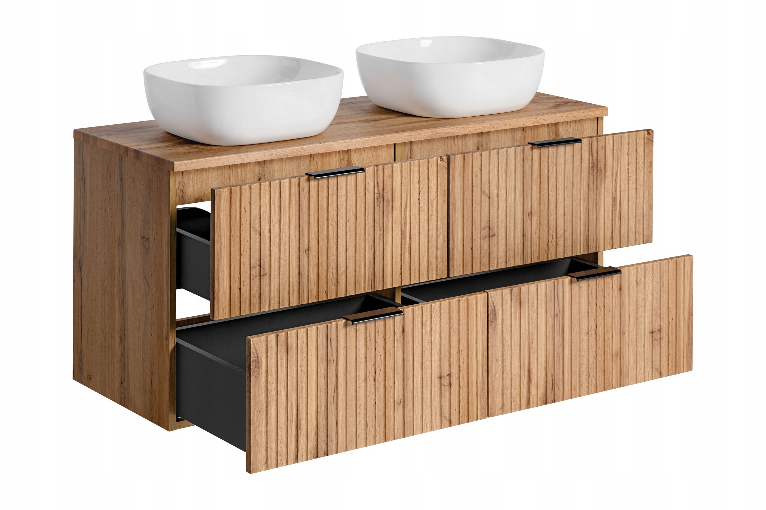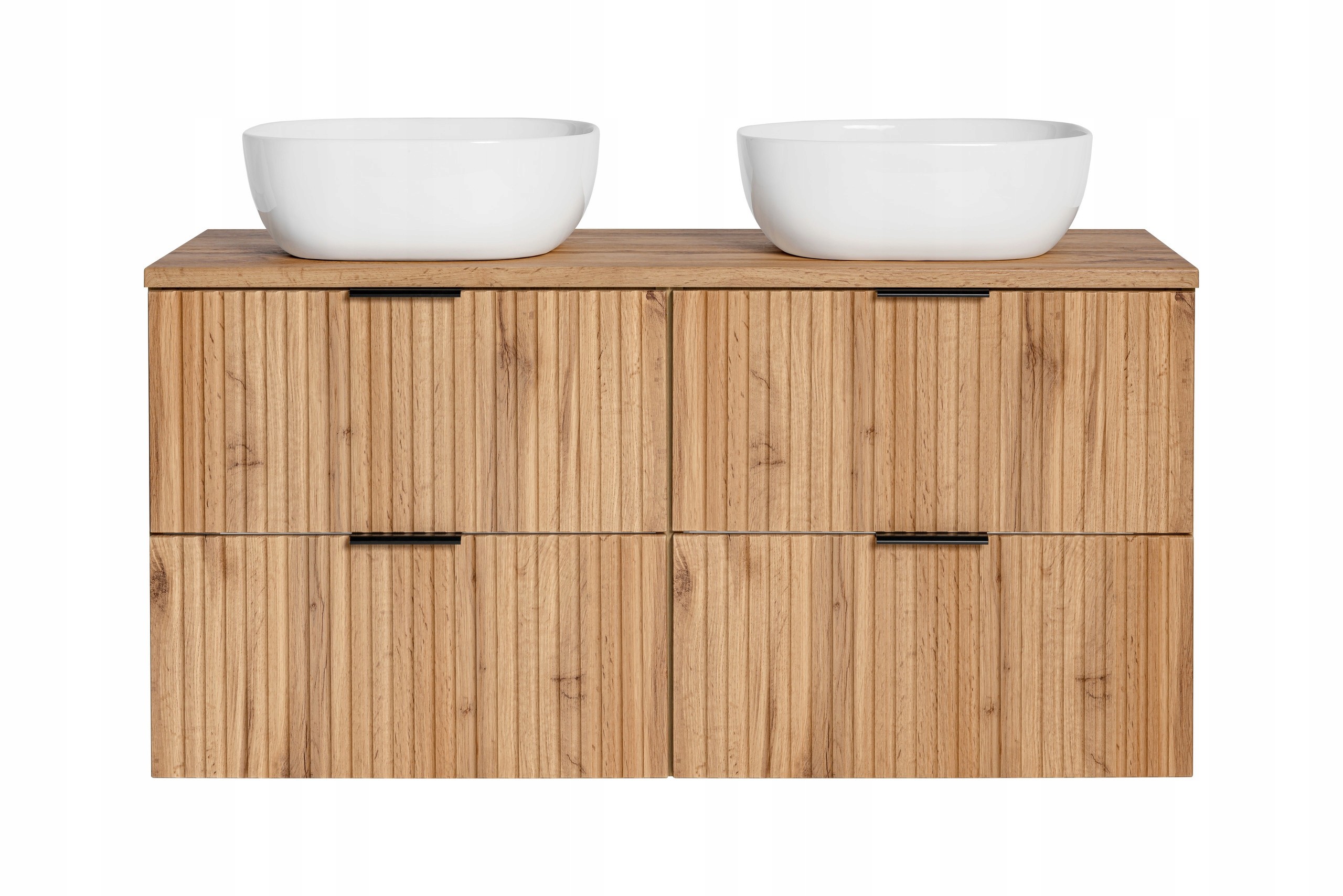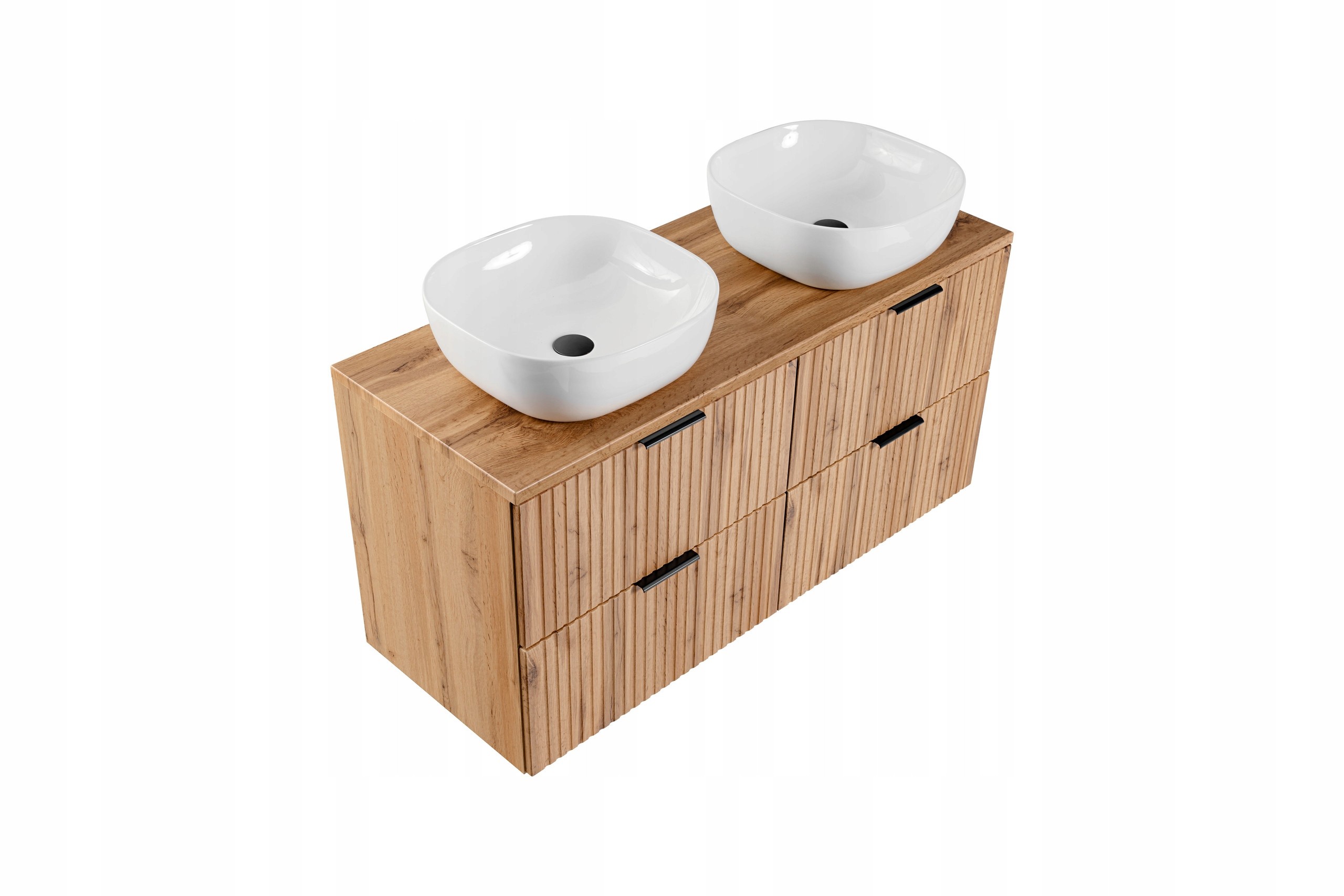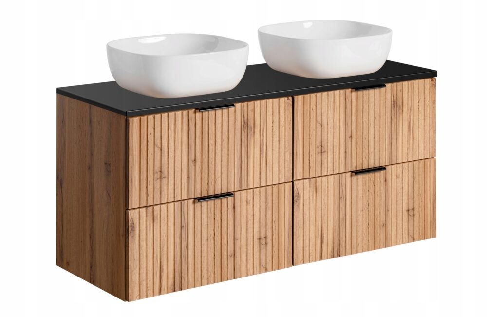 Szafka łazienkowa ADEL DĄB WOTAN to idealne połączenie funkcjonalności i stylu. Jej ryflowane fronty w ciepłym odcieniu dębu wprowadzą naturalny i przytulny charakter do każdej łazienki, a nowoczesna forma mebla zapewnia elegancki wygląd. Możliwość wyboru uchwytów w kolorze złotym, chromowym lub czarnym matowym pozwala na dostosowanie wyglądu szafki do indywidualnych preferencji.