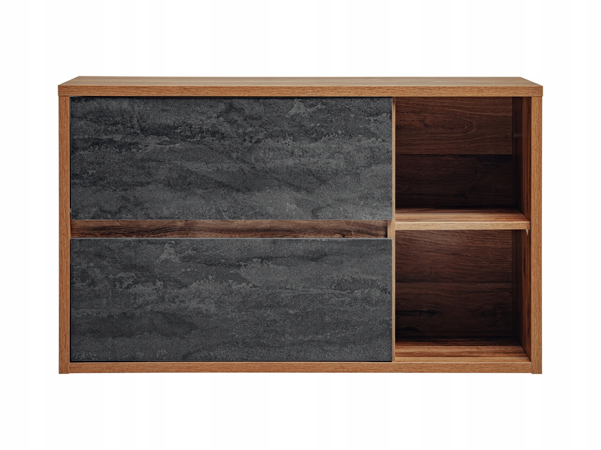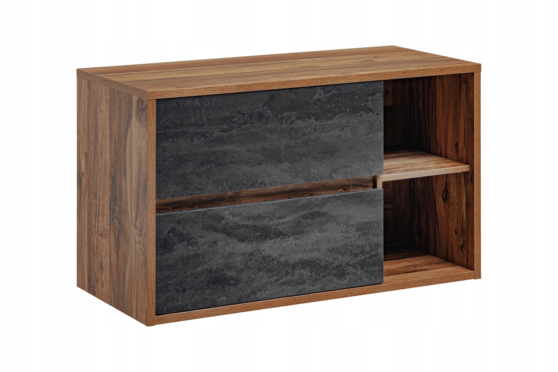 Kolekcja HAMPTON to idealne rozwiązanie dla miłośników nowoczesnego, industrialnego stylu. Wisząca szafka łazienkowa Hampton Concrete o surowym wyglądzie betonu, uzupełniona ciepłymi akcentami dębu Hunton, stanowi doskonałą propozycję do loftowych wnętrz. Betonowe fronty w połączeniu z wyrazistym dekorem drewna nadają szafce wyjątkowego charakteru, tworząc równocześnie harmonijną mieszankę klasyki i nowoczesności.