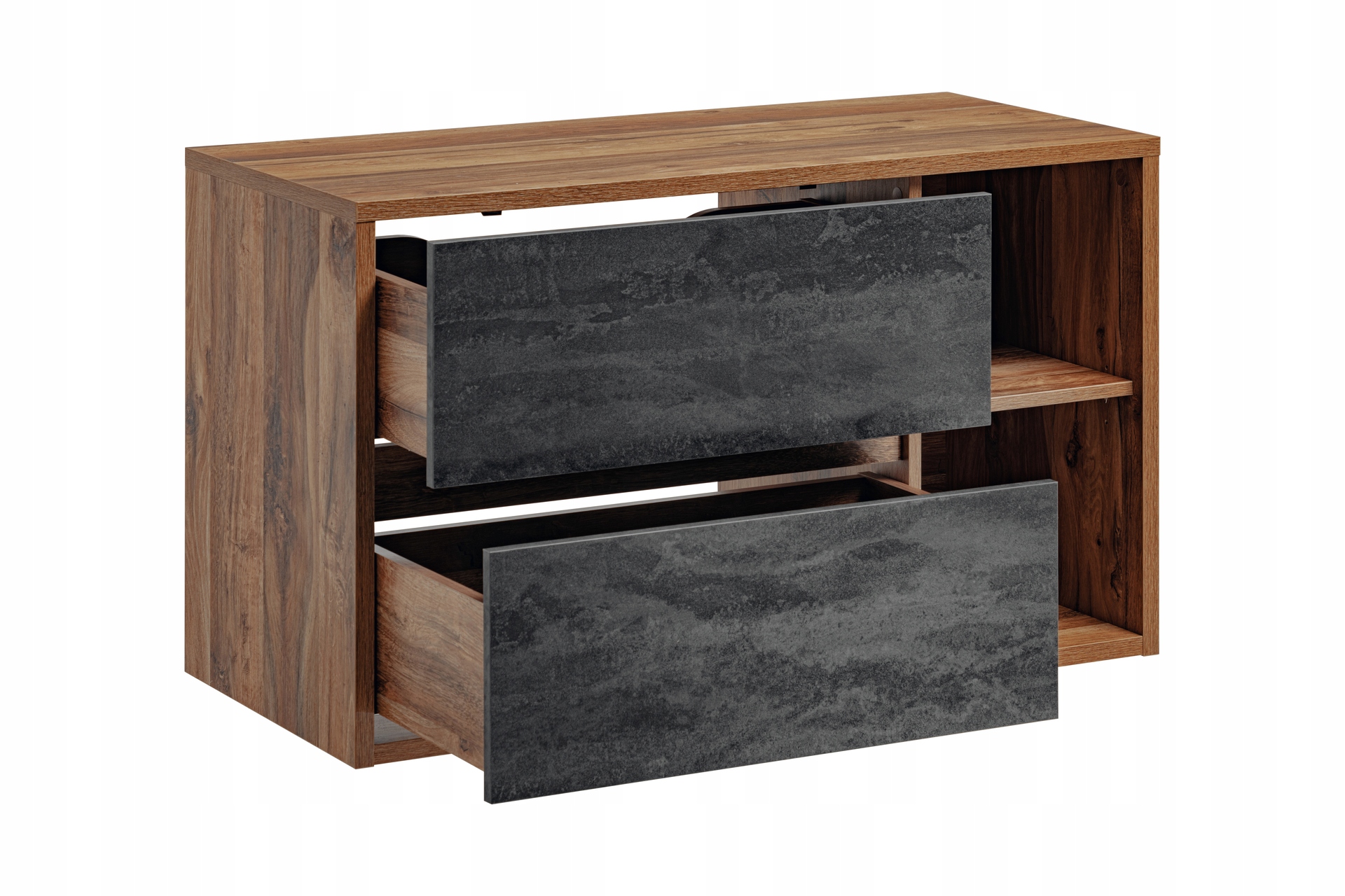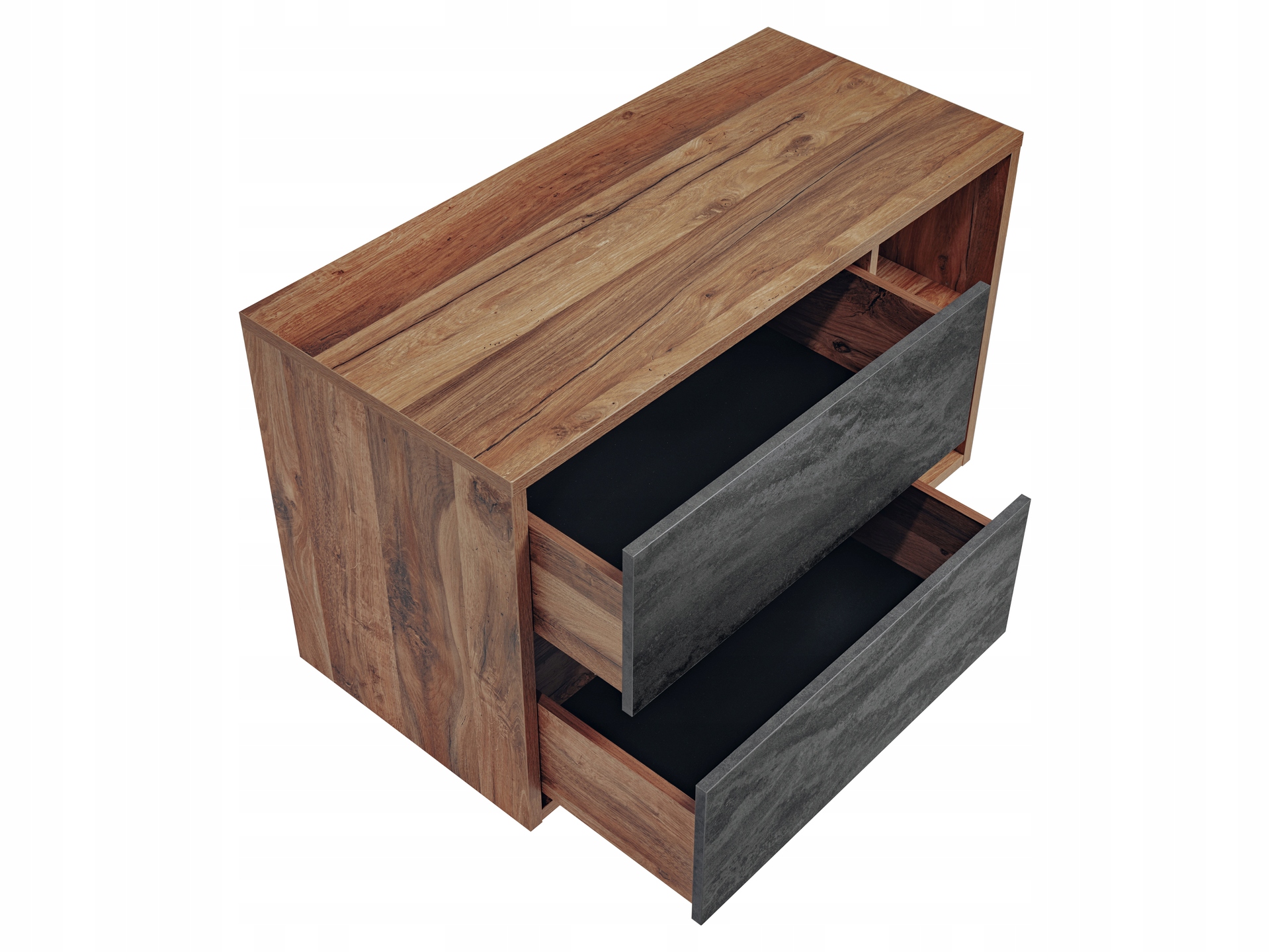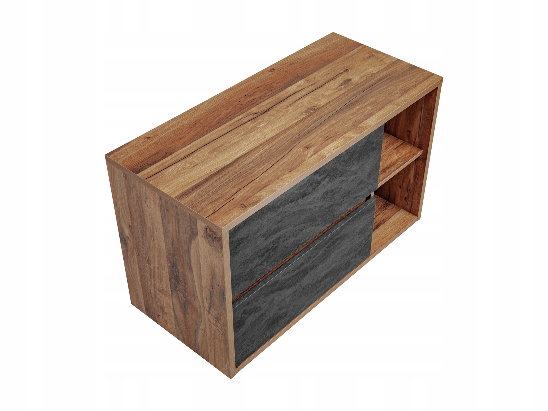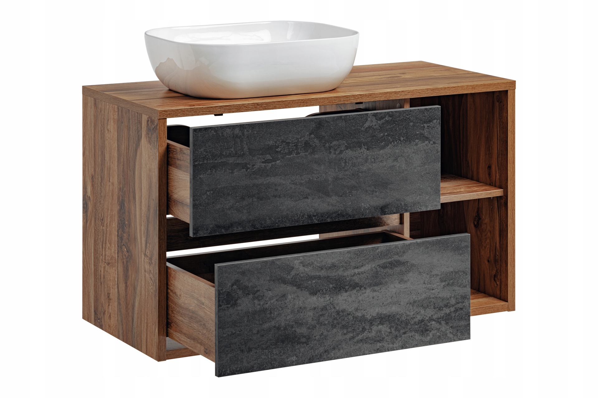 Szafka o szerokości 100 cm jest wyposażona w dwie przestronne szuflady z funkcją cichego domyku, co zapewnia wygodę i komfort codziennego użytkowania. W zestawie znajduje się także umywalka nablatowa w eleganckiej bieli, wykonana z ceramiki najwyższej jakości, która podkreśla unikalny styl mebla.