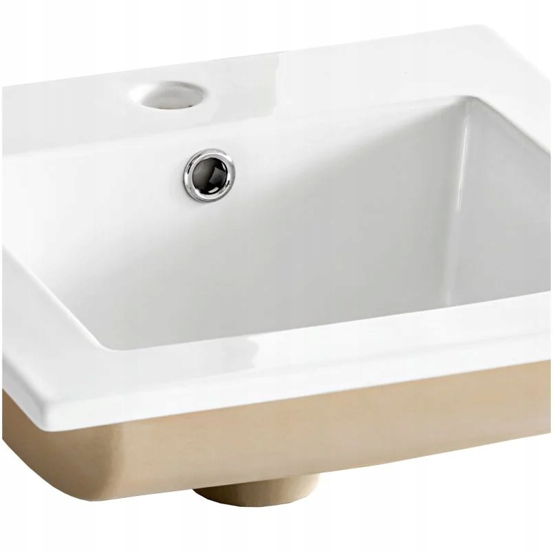 Model został wykonany z wysokiej jakości ceramiki, dzięki czemu jest trwały, odporny na wilgoć i zarysowania oraz łatwy do utrzymania w czystości. Montaż wpuszczany w szafkę pozwala zaoszczędzić miejsce i uzyskać estetyczną, spójną linię zabudowy.
