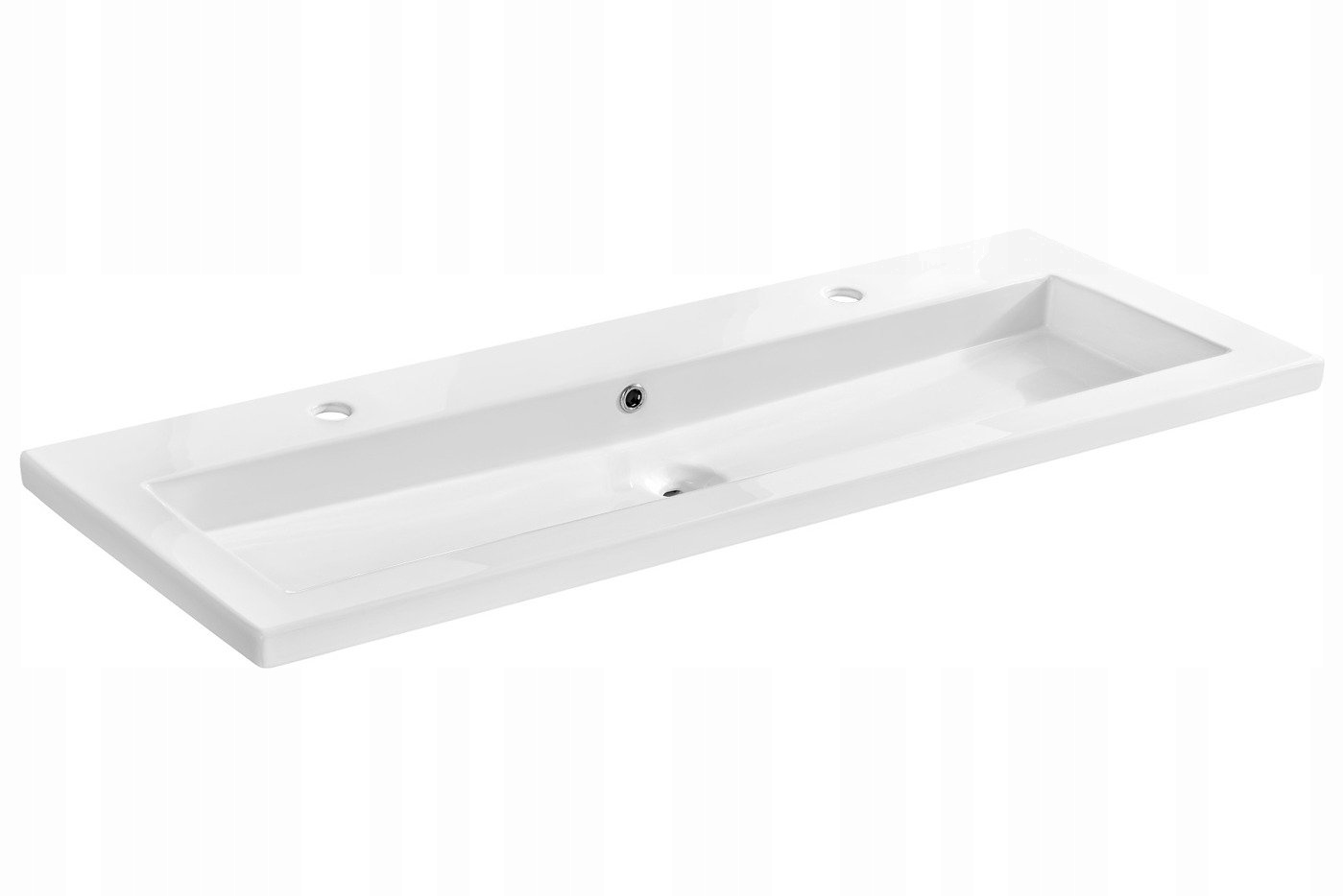 Wnętrze stanowi jedna obszerna misa o wymiarach 107 x 27 cm i głębokości 14 cm, a rant o wysokości 3,5 cm dodaje całości nowoczesnej elegancji. Tył umywalki został w pełni szkliwiony, a gładka powierzchnia ułatwia utrzymanie higieny. W komplecie nie ma korka typu click-clack, dlatego należy dokupić go oddzielnie.