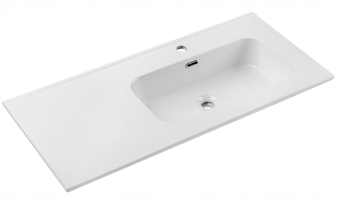 Umywalka meblowa GO 2 100 cm to funkcjonalne i estetyczne rozwiązanie do łazienek, które łączy w sobie komfort użytkowania i nowoczesny wygląd. Model został wyposażony w zintegrowany ceramiczny blat po bokach misy, który zapewnia dodatkową przestrzeń na kosmetyki, akcesoria i przedmioty codziennego użytku. Wykonana z wysokiej jakości ceramiki, posiada gładką powierzchnię, szkliwiony tył oraz eleganckie wykończenie w białym połysku, które optycznie rozświetla przestrzeń. Dzięki montażowi wpuszczanemu w szafkę, umywalka prezentuje się spójnie z meblami łazienkowymi i pozwala na stworzenie funkcjonalnej zabudowy. Szerokość całkowita wynosi 101 cm, wysokość 17 cm, a głębokość 46 cm, co zapewnia wygodne korzystanie na co dzień. Umywalka wyposażona jest w 1 otwór na baterię i przelew, natomiast click-clack nie znajduje się w zestawie, co umożliwia jego indywidualny dobór.