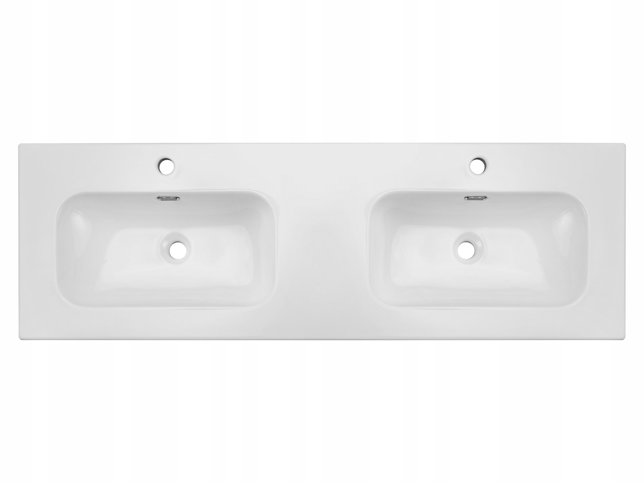 Umywalka meblowa FLY 140 cm to idealne rozwiązanie dla większych łazienek oraz wnętrz użytkowanych przez więcej niż jedną osobę. Model wyposażony jest w dwie oddzielne misy oraz dwa otwory na baterię, co zapewnia wygodę codziennego użytkowania i zwiększa funkcjonalność przestrzeni. Wysokiej jakości ceramika w eleganckim białym połysku prezentuje się nowocześnie i stylowo, jednocześnie gwarantując odporność na wilgoć, zarysowania i przebarwienia. Gładka, szkliwiona powierzchnia ułatwia utrzymanie czystości, a montaż wpuszczany w szafkę pozwala na uzyskanie spójnego i estetycznego wyglądu całej zabudowy. Umywalka ma szerokość 141 cm, wysokość 15,5 cm i głębokość 46 cm, dzięki czemu świetnie sprawdzi się w przestronnych wnętrzach. To funkcjonalny i efektowny wybór do nowoczesnych aranżacji łazienkowych.