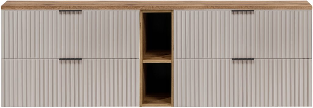 Kolekcja Mebli Łazienkowych Line to połączenie nowoczesnego wyglądu, wysokiej jakości wykonania i codziennej funkcjonalności. Matowe wykończenie w klasycznej bieli rozświetla przestrzeń i nadaje wnętrzu lekkości. Frezowane fronty dodają meblom elegancji, a system cichego domyku zapewnia komfort użytkowania. Meble są zmontowane i przeznaczone do montażu wiszącego – łatwe w instalacji i praktyczne na co dzień. Prezentowany zestaw z szeroką szafką 80 cm, ceramiczną umywalką oraz dwoma słupkami to idealny wybór dla osób, które potrzebują więcej miejsca do przechowywania bez kompromisów w stylu.