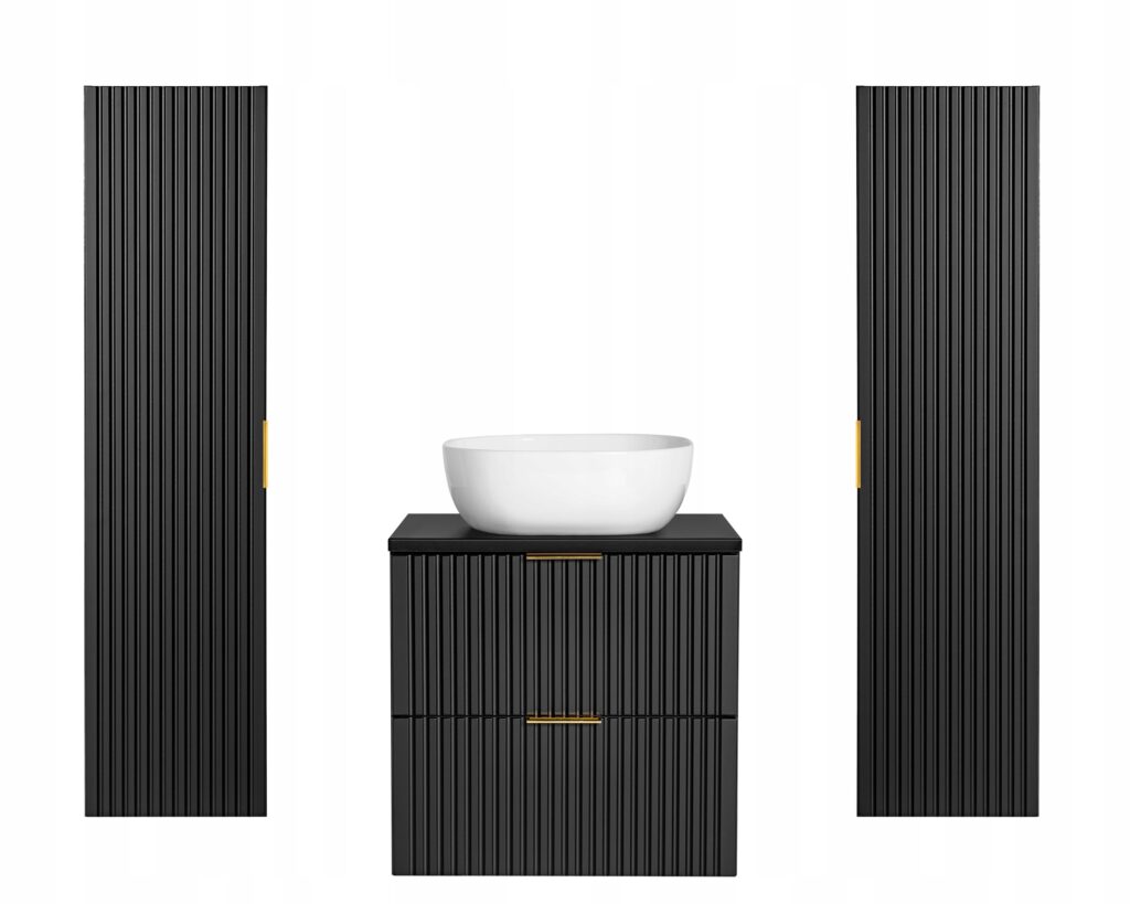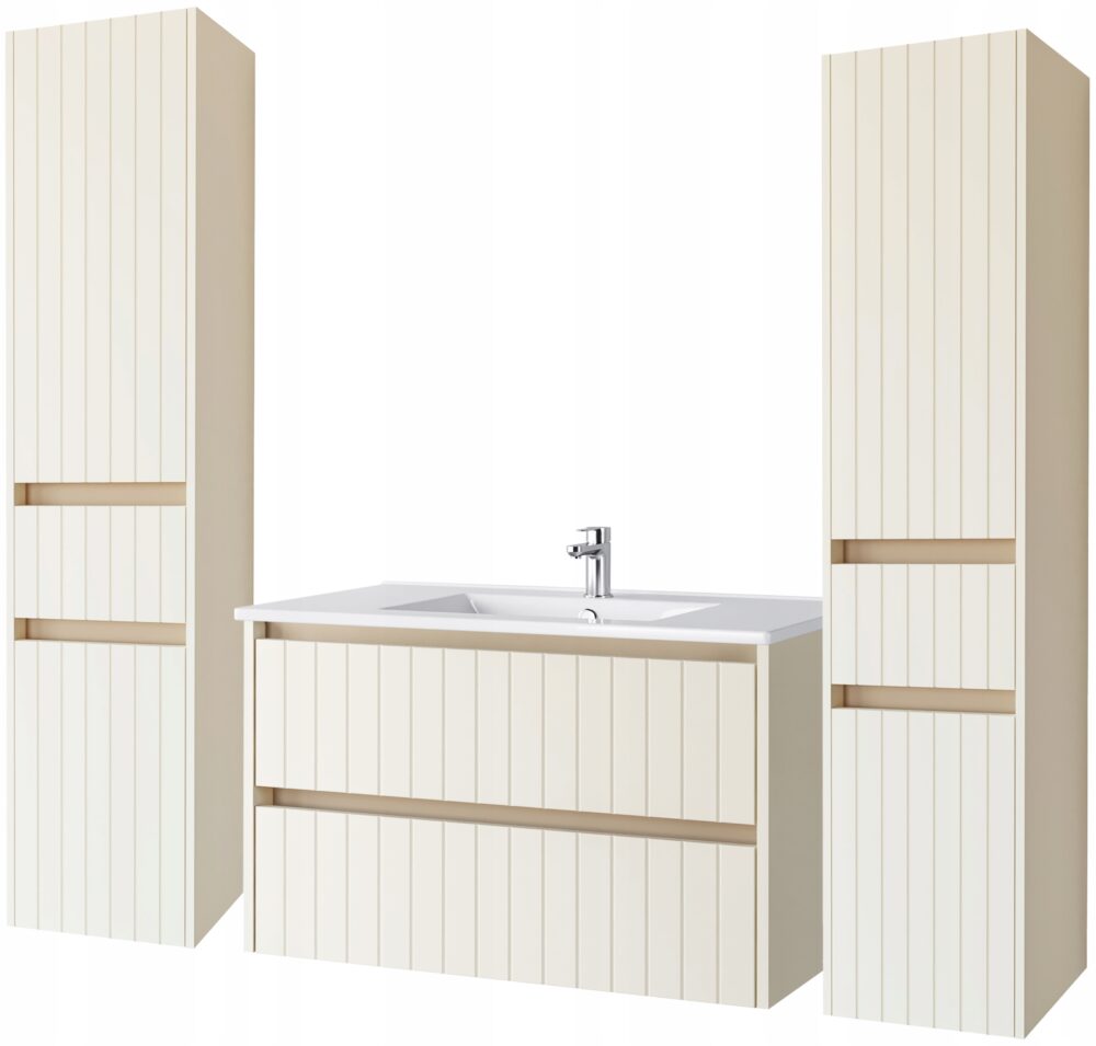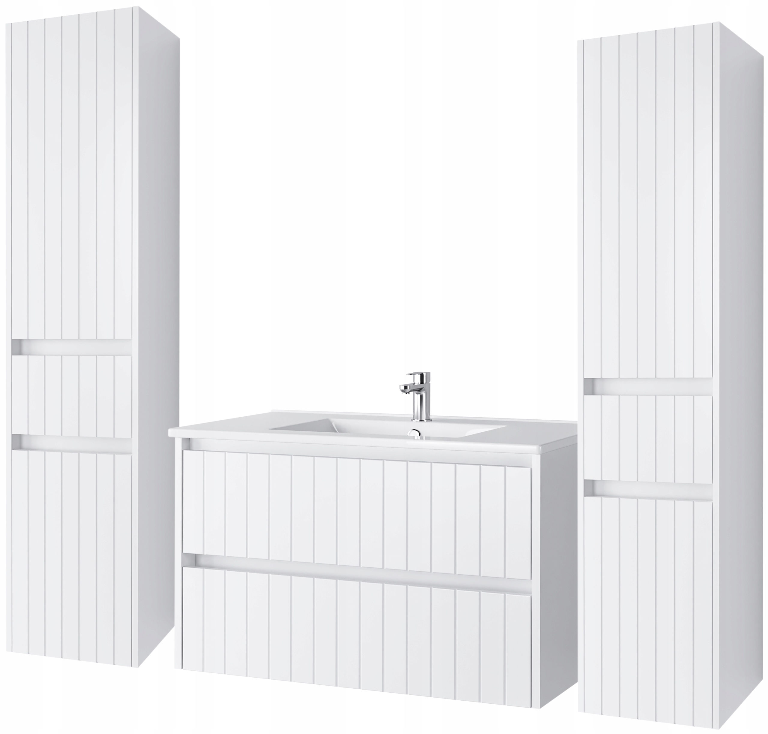 Zestaw: Szafka pod umywalkę Line 80 cm + 2 x słupek Line 165 cm + umywalka ceramiczna 80 cm (kolor biały)