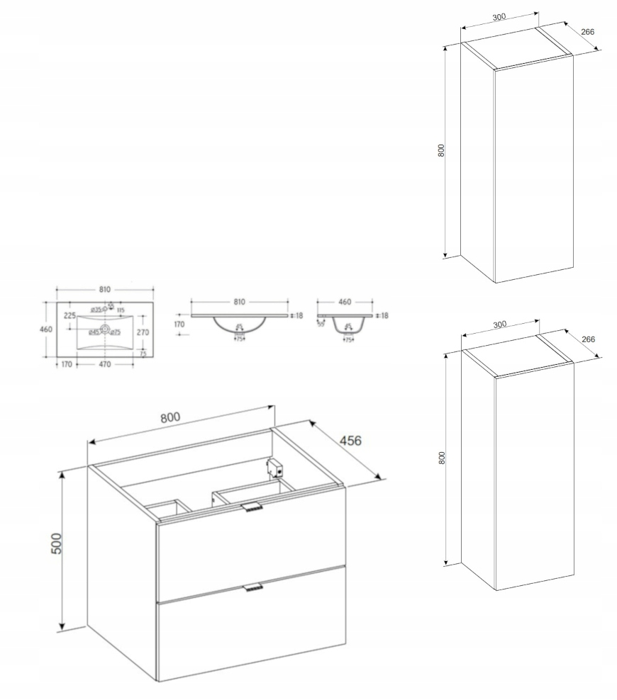 Dopełnieniem zestawu jest wiszący słupek złożony z dwóch półsłupków, w których znajduje się łącznie sześć praktycznych przestrzeni do przechowywania – dzięki dwóm wewnętrznym półkom w każdej części. To doskonałe miejsce na ręczniki, kosmetyki i wszystkie niezbędne akcesoria, utrzymując porządek i organizację w łazience. Brak uchwytów i system SOFT CLOSE w drzwiach podkreślają nowoczesny styl kolekcji.