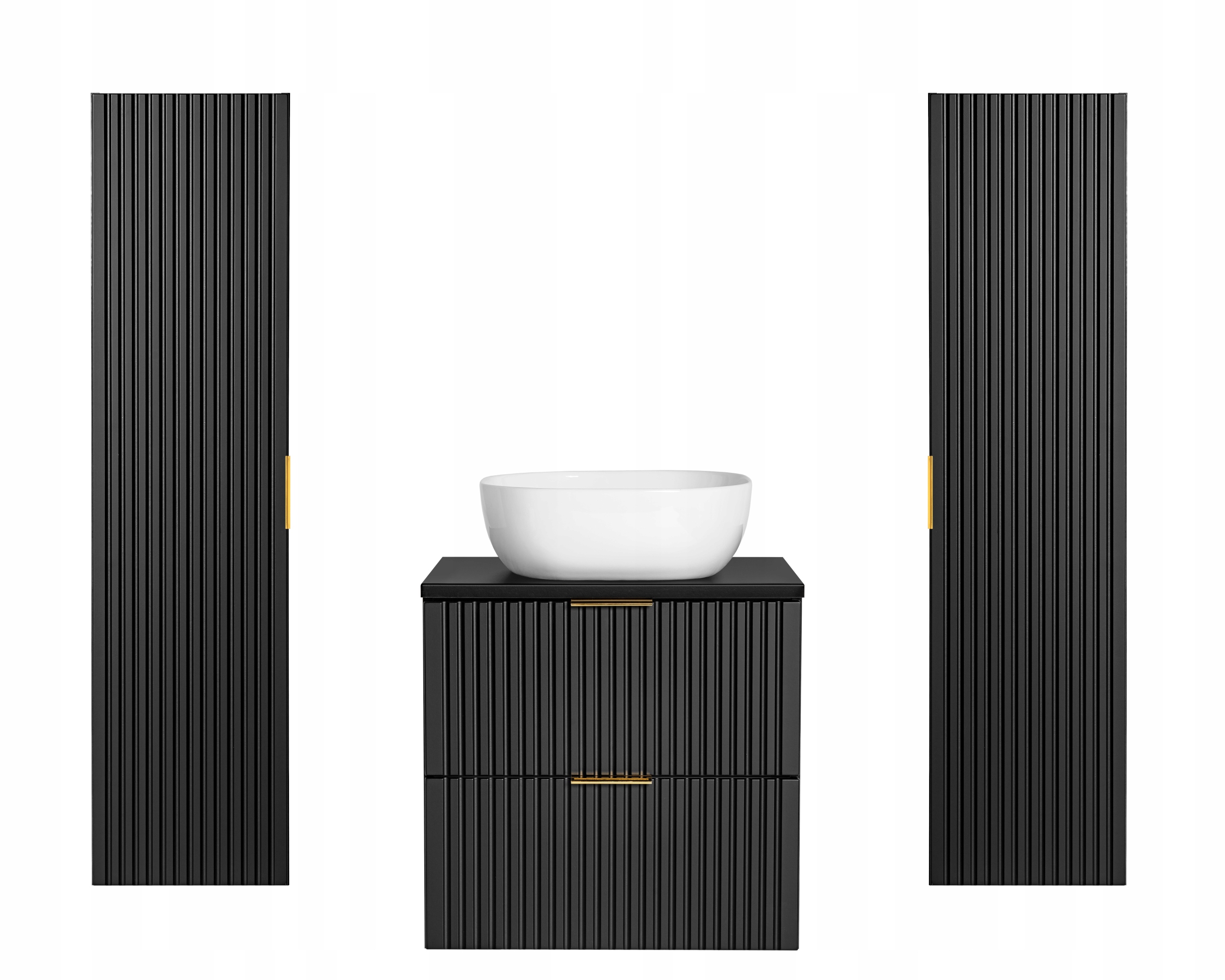 Zestaw Łazienkowy Szafka Łazienkowa Adel Black 60 cm z Dwoma Słupkami Adel Black, Blatem i Umywalką