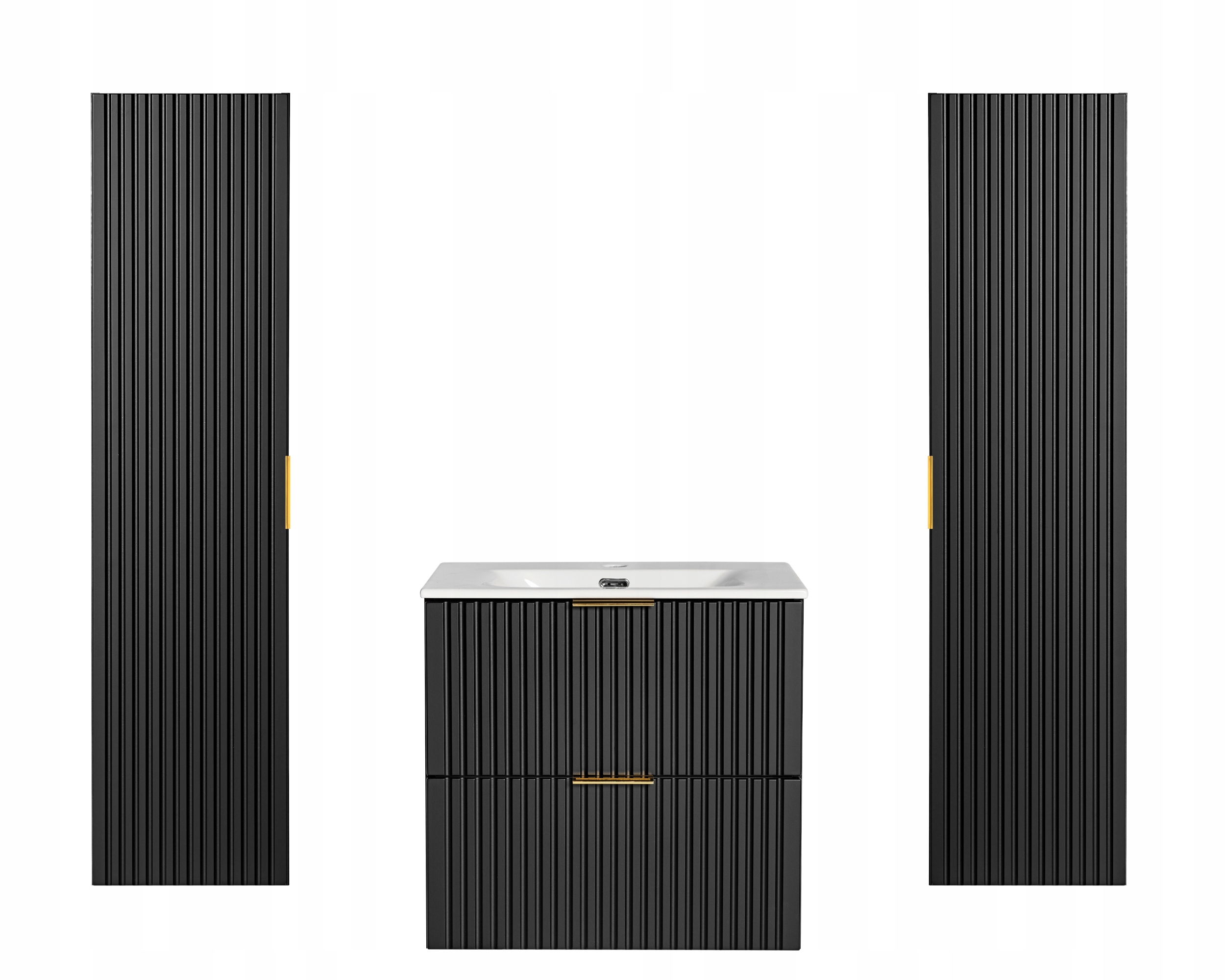 Zestaw Łazienkowy Adel Black Szafka Łazienkowa 60 cm z Umywalką i Słupkami