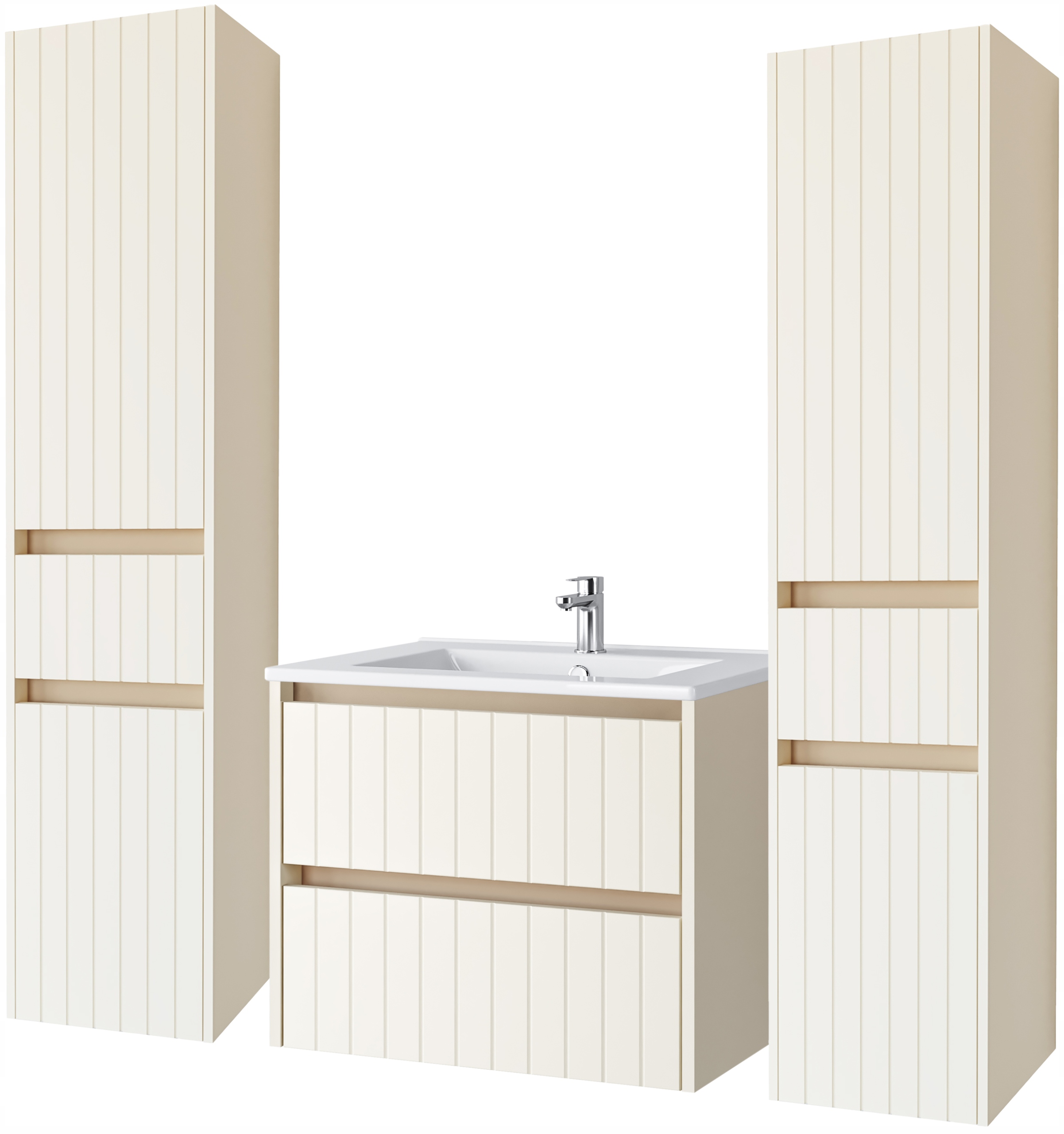 Zestaw: Szafka pod umywalkę Line 60 cm + 2 x słupek Line 165 cm + umywalka ceramiczna 60 cm (kolor migdałowy)