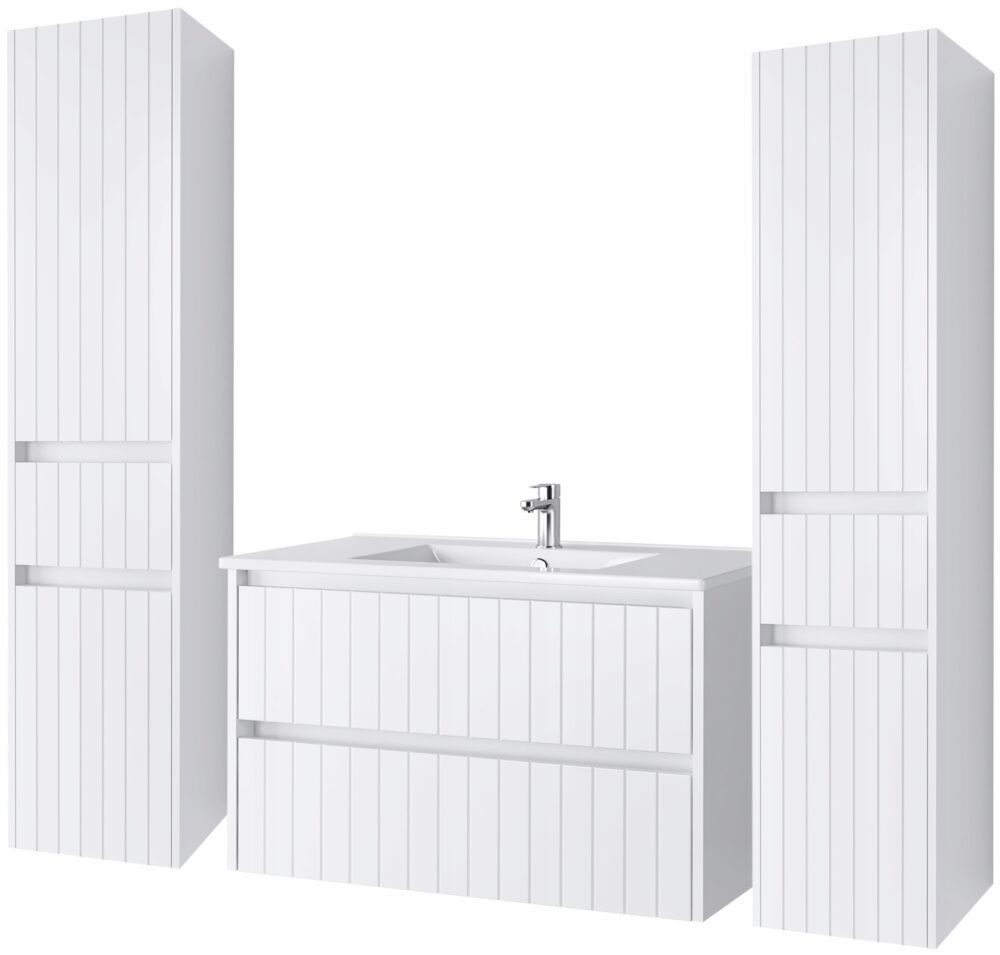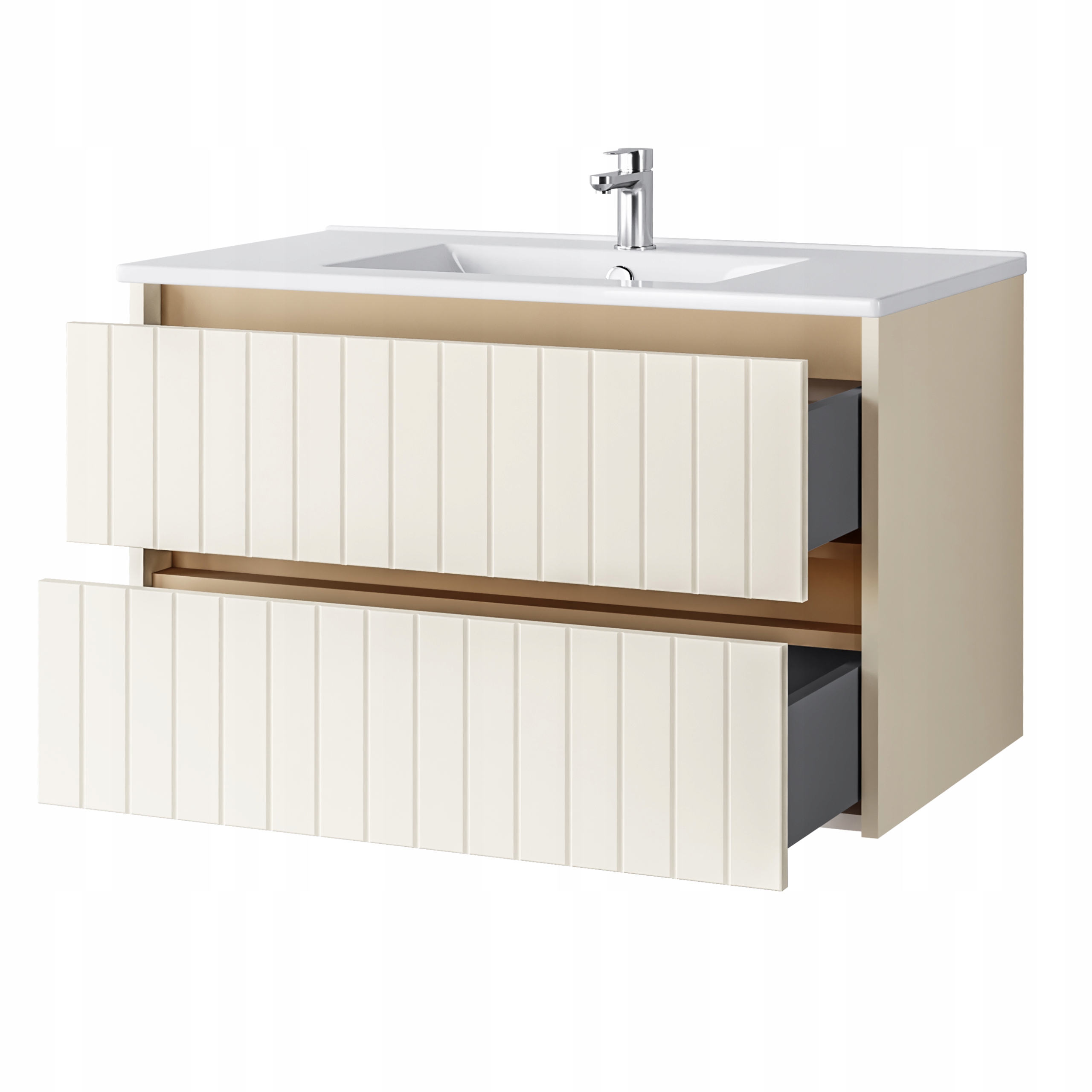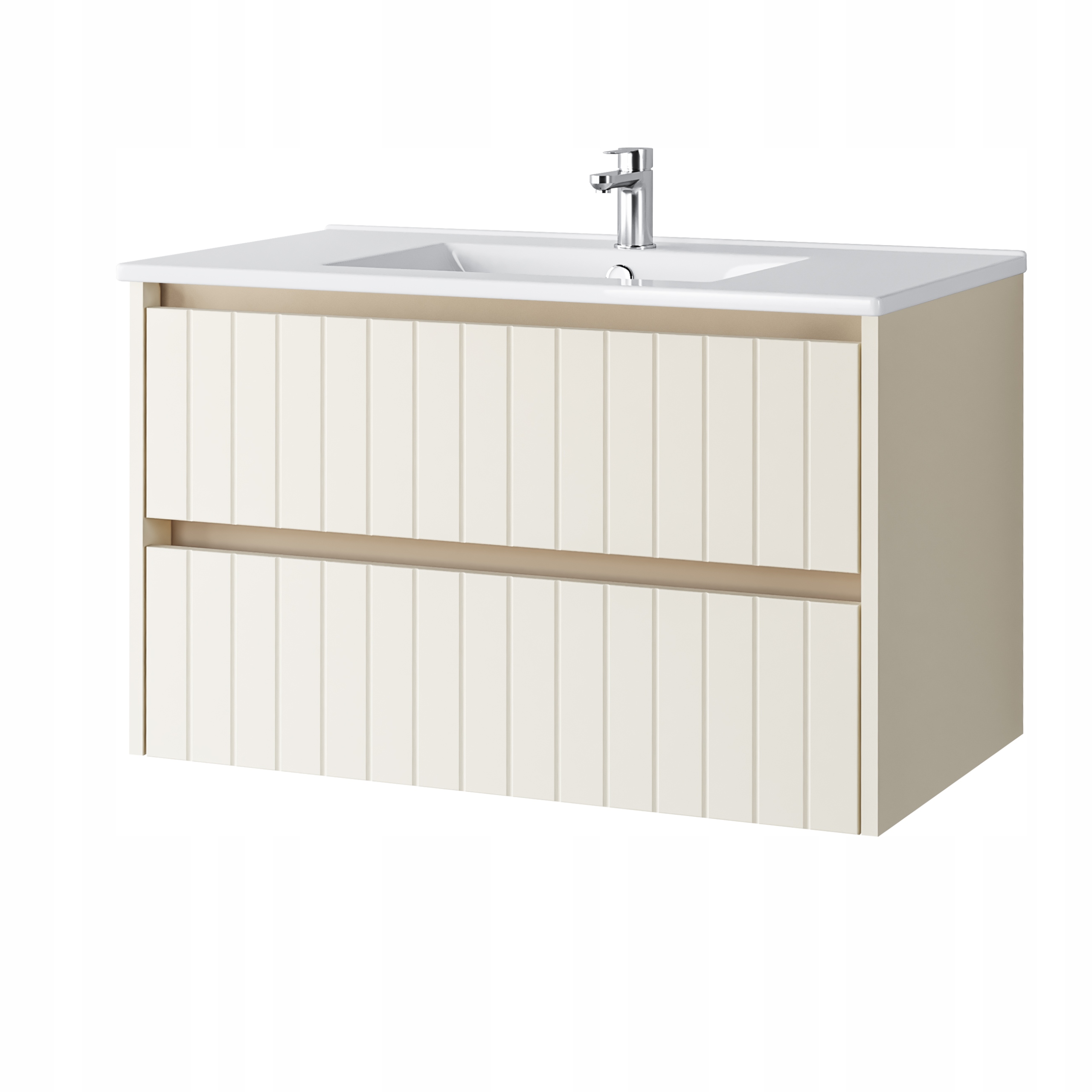 Zestaw: Szafka pod umywalkę Line 80 cm + 2 x słupek Line 165 cm + umywalka ceramiczna 80 cm (kolor migdałowy)