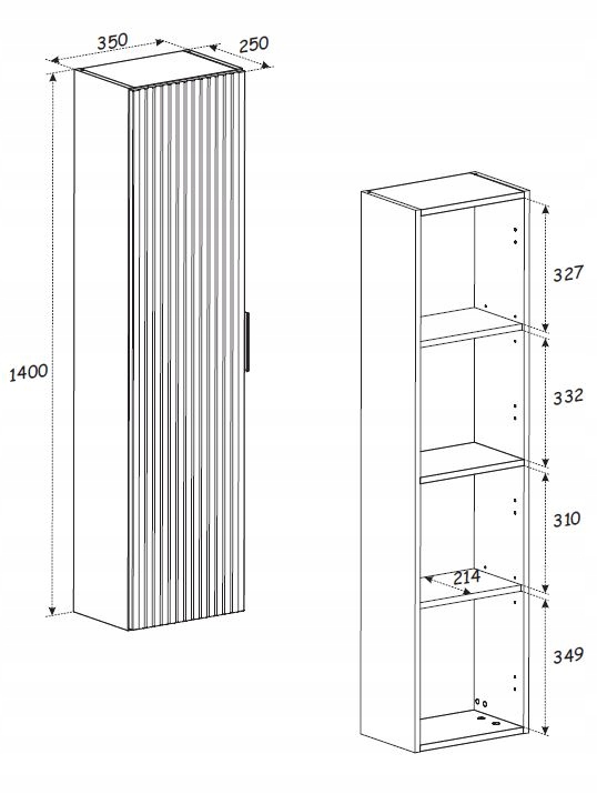 Słupek łazienkowy ADEL BLACK stanowi funkcjonalne uzupełnienie zestawu i zapewnia dodatkową przestrzeń do przechowywania. Wewnątrz znajdują się trzy półki, które pomagają uporządkować ręczniki, kosmetyki, środki czystości oraz pozostałe wyposażenie łazienki. Drzwi słupka są uniwersalne, dlatego kierunek otwierania można dopasować do układu pomieszczenia. System cichego domyku zwiększa komfort codziennego użytkowania.