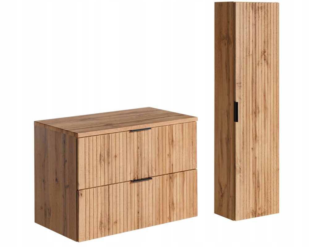 Kolekcja ADEL OAK to elegancki zestaw mebli łazienkowych, który łączy nowoczesny design z funkcjonalnością, doskonale wpisując się w każde wnętrze. Dzięki unikalnym, ryflowanym frontom i możliwości personalizacji uchwytów, stworzysz łazienkę, która idealnie odda Twój styl. W zestawie znajdują się wiszące szafki pod umywalkę oraz słupki, które maksymalizują przestrzeń przechowywania. Dodatkowo, opcje uchwytów w trzech kolorach: czarny, złoty, chrom pozwalają na spersonalizowanie wyglądu, co nada Twojej łazience wyjątkowego charakteru. Ciesz się komfortem dzięki funkcji SOFT CLOSE, która zapewnia ciche domykanie drzwi i szuflad. Meble wiszące to nie tylko nowoczesny styl, ale także łatwość utrzymania czystości.