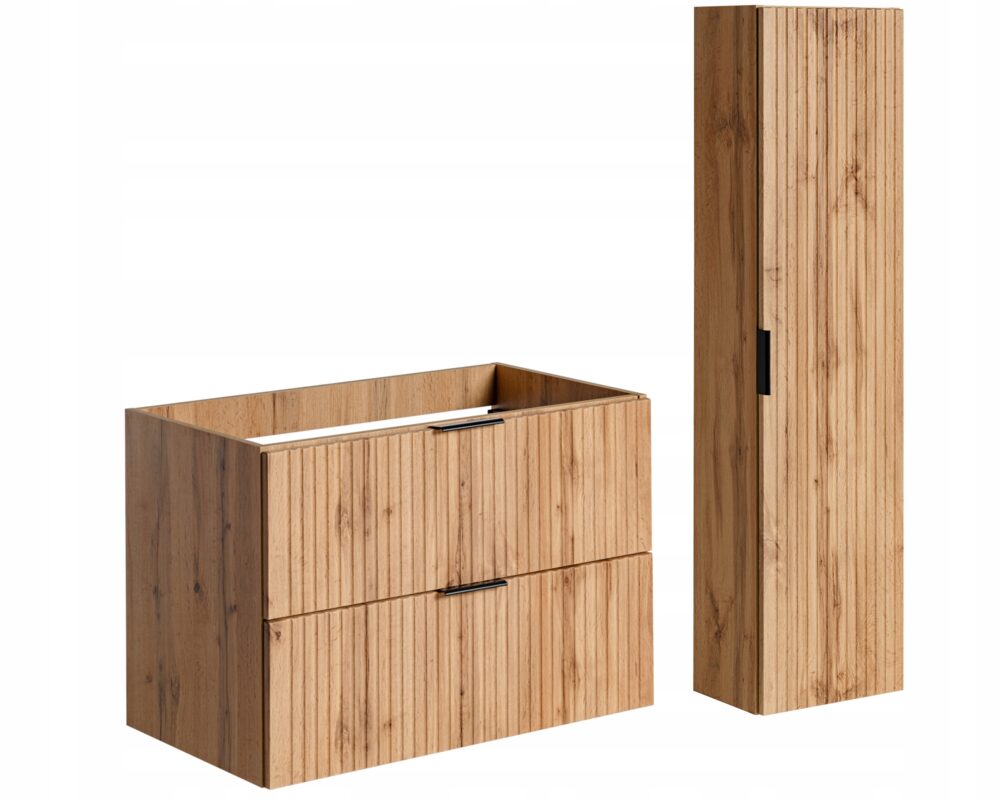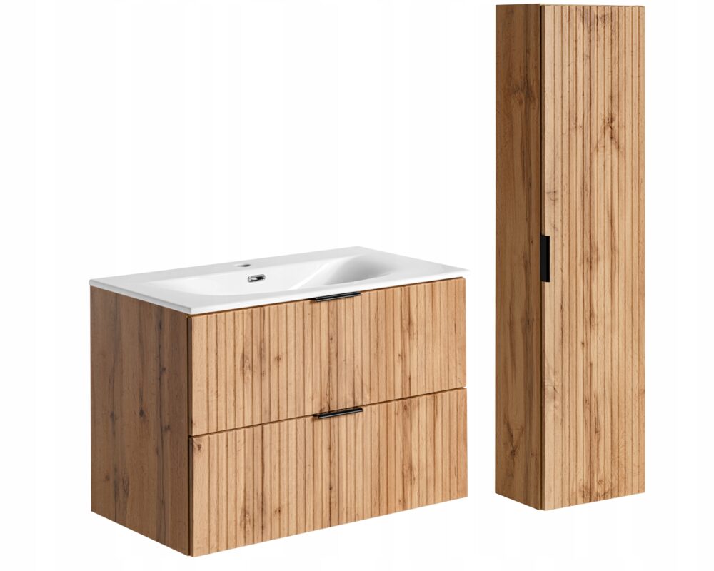 Kolekcja ADEL OAK to elegancki zestaw mebli łazienkowych, który łączy nowoczesny design z funkcjonalnością, doskonale wpisując się w każde wnętrze. Dzięki unikalnym, ryflowanym frontom i możliwości personalizacji uchwytów, stworzysz łazienkę, która idealnie odda Twój styl. W zestawie znajdują się wiszące szafki pod umywalkę oraz słupki, które maksymalizują przestrzeń przechowywania. Dodatkowo, opcje uchwytów w trzech kolorach: czarny, złoty, chrom pozwalają na spersonalizowanie wyglądu, co nada Twojej łazience wyjątkowego charakteru. Ciesz się komfortem dzięki funkcji SOFT CLOSE, która zapewnia ciche domykanie drzwi i szuflad. Meble wiszące to nie tylko nowoczesny styl, ale także łatwość utrzymania czystości.