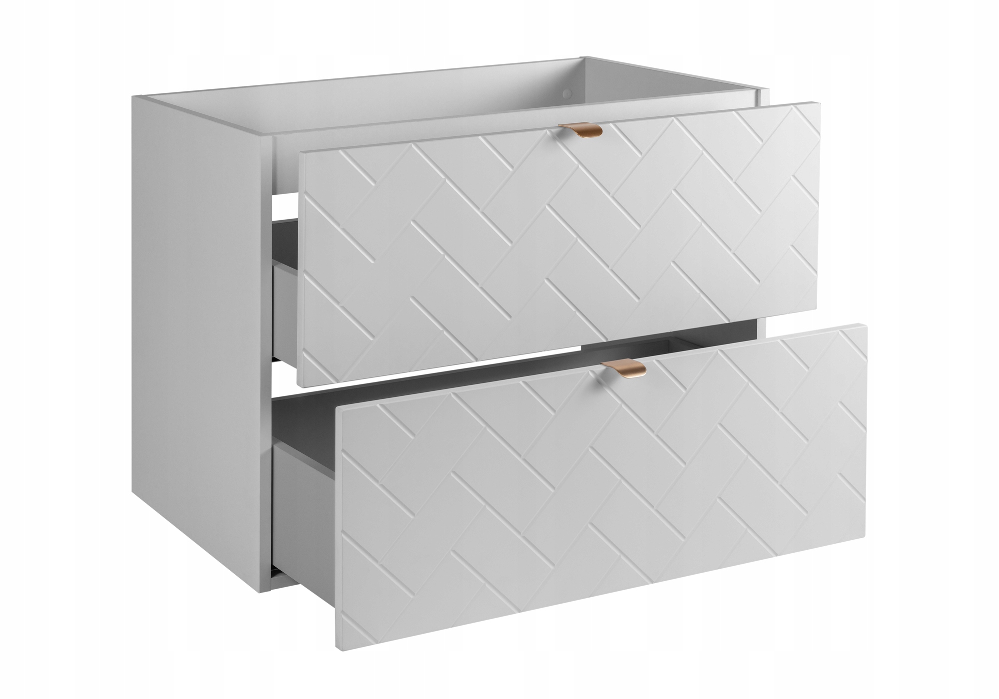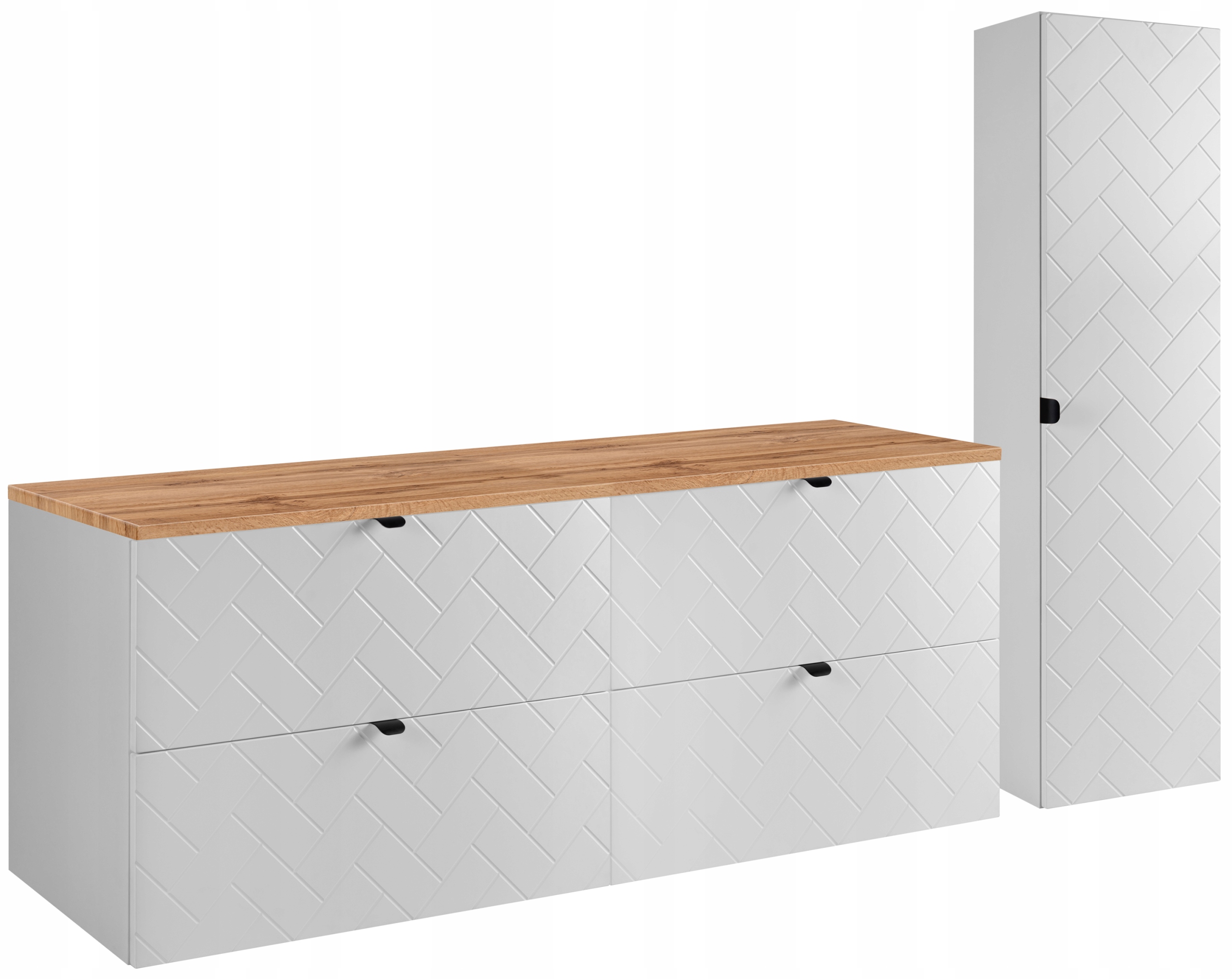 Prezentujemy elegancki zestaw łazienkowy MADIS, który łączy w sobie wyjątkowy design oraz funkcjonalność, zaprojektowany z myślą o najbardziej wymagających użytkownikach. Subtelny wzór w kształcie jodełki nadaje meblom unikalny charakter, mechanizm cichego domyku w szufladach oraz drzwiach zapewnia komfort użytkowania, a także chroni meble przed uszkodzeniami.