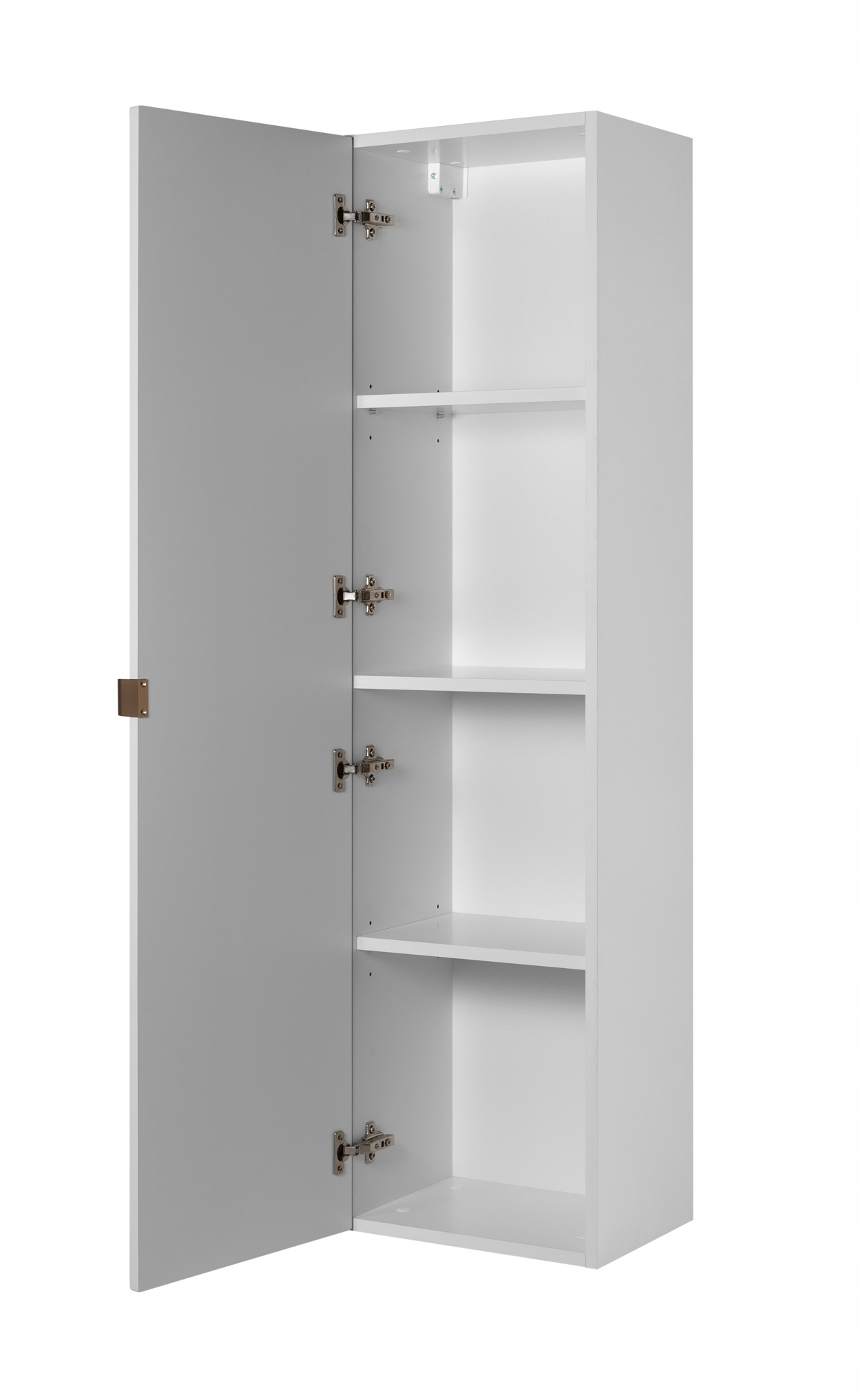Zestaw składa się z dwóch szafek pod umywalkę o łącznej szerokości 160 cm oraz wysokiego słupka, co zapewnia praktyczne rozwiązania do przechowywania. Wybór kolorów uchwytów (złoty, czarny, srebrny) umożliwia łatwe dopasowanie do każdego wystroju, pozwalając na stworzenie harmonijnej aranżacji.