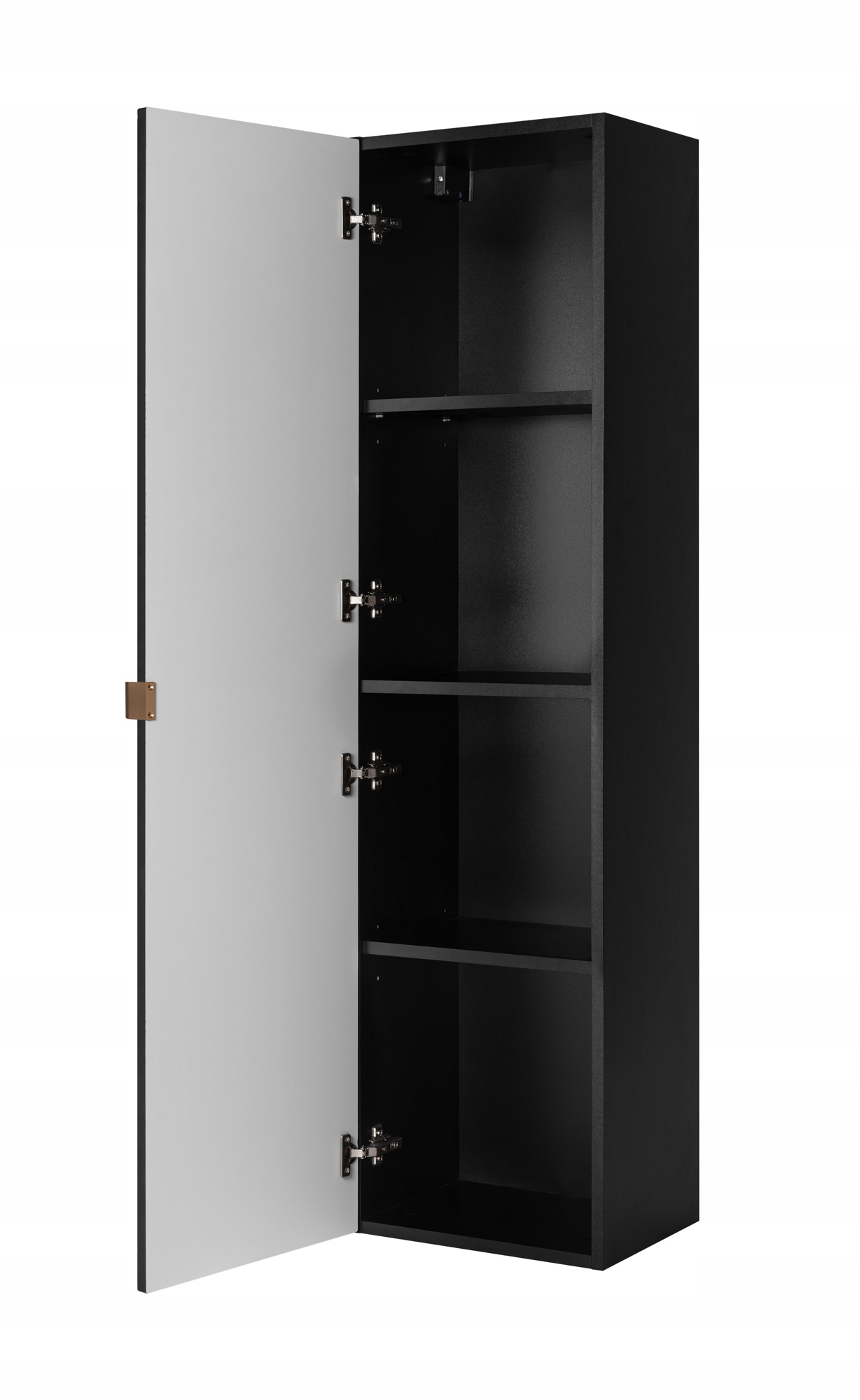 Dzięki możliwości wyboru koloru uchwytów — czarnego, złotego lub srebrnego — każdy może dopasować meble do swojego stylu. Mechanizm cichego domyku w szufladach oraz drzwiach zapewnia komfort użytkowania oraz chroni meble przed uszkodzeniami.