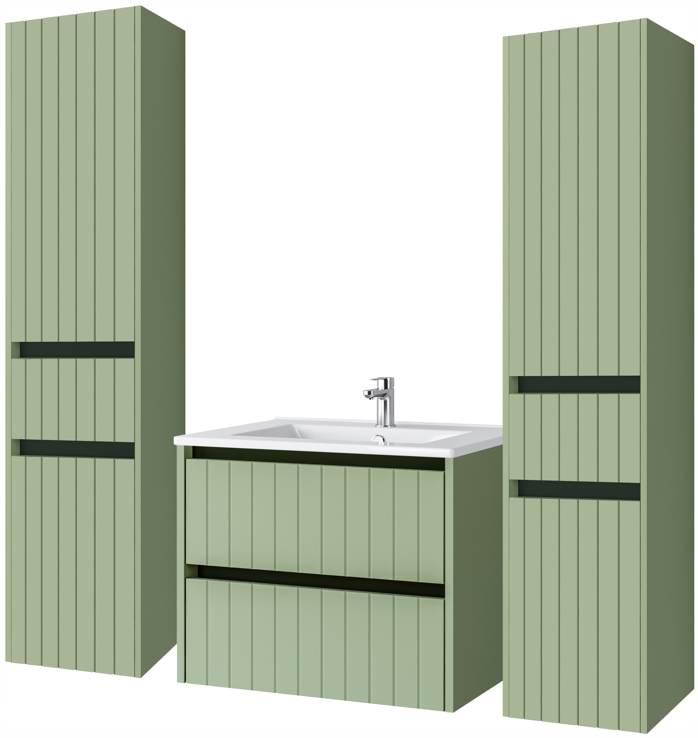 Zestaw: Szafka pod umywalkę Line 70 cm + 2 x słupek Line 165 cm + umywalka ceramiczna 70 cm (kolor zielony)