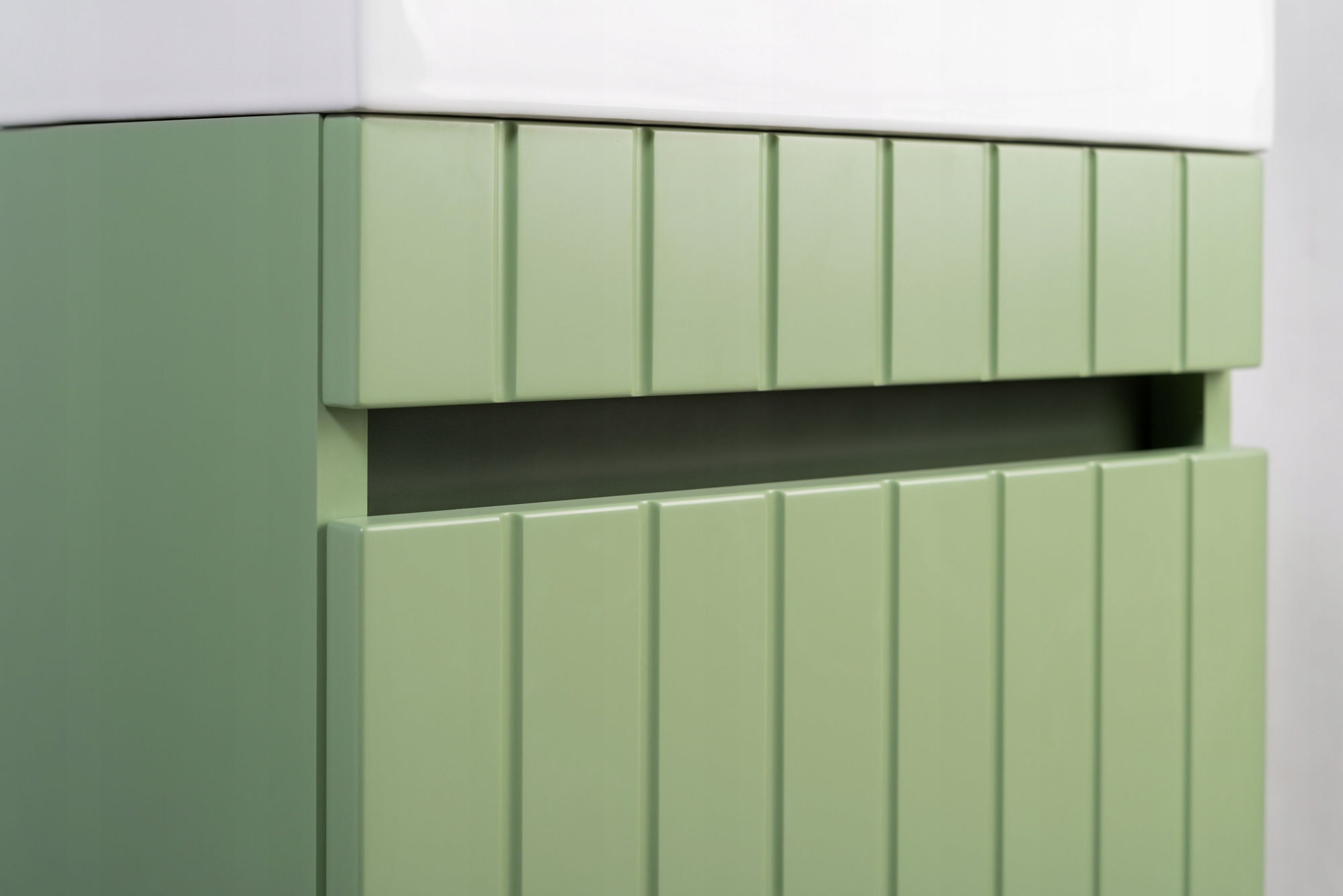 Kolekcja Mebli Łazienkowych Line to nowoczesna elegancja połączona z funkcjonalnością. Matowe wykończenie w odcieniu zieleni wprowadza do wnętrza świeżość i spokój, a frezowane fronty dodają subtelnego uroku. Zastosowanie wysokiej jakości materiałów, systemu cichego domyku oraz gotowej do montażu formy sprawia, że meble są nie tylko estetyczne, ale również niezwykle praktyczne. Zestaw z szafką 70 cm, ceramiczną umywalką i dwoma słupkami to doskonały wybór do funkcjonalnej i stylowej łazienki.