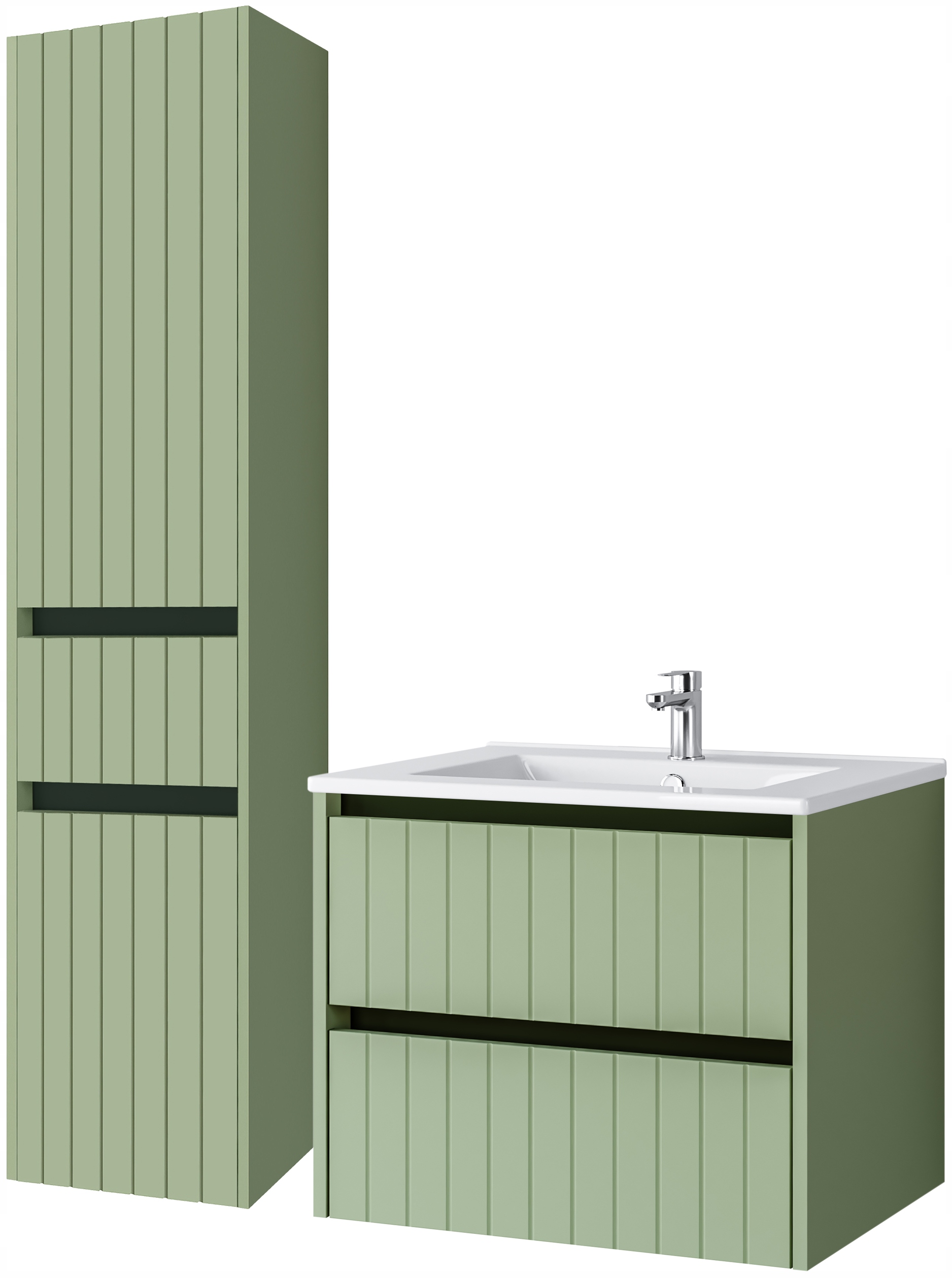 Zestaw: Szafka pod umywalkę Line 60 cm + słupek Line 165 cm + umywalka ceramiczna 60 cm (kolor zielony)