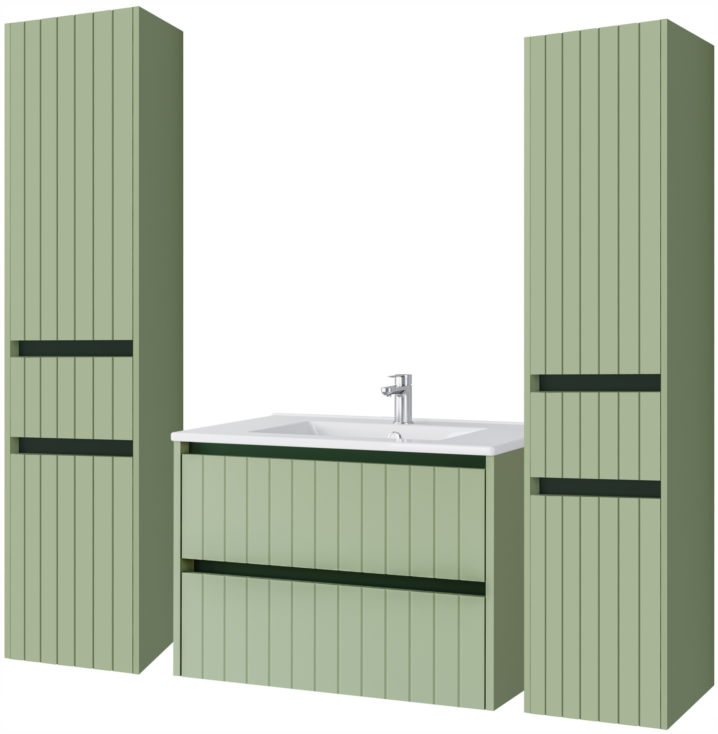 Zestaw: Szafka pod umywalkę Line 70 cm + 2 x słupek Line 165 cm + umywalka ceramiczna 70 cm (kolor zielony)