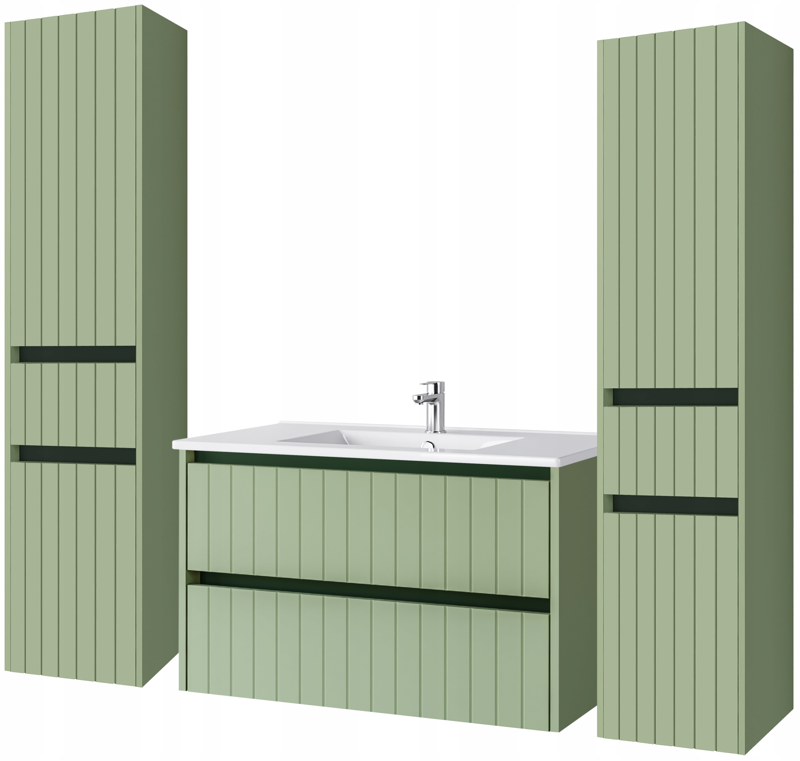 Zestaw: Szafka pod umywalkę Line 80 cm + 2 x słupek Line 165 cm + umywalka ceramiczna 80 cm (kolor zielony)
