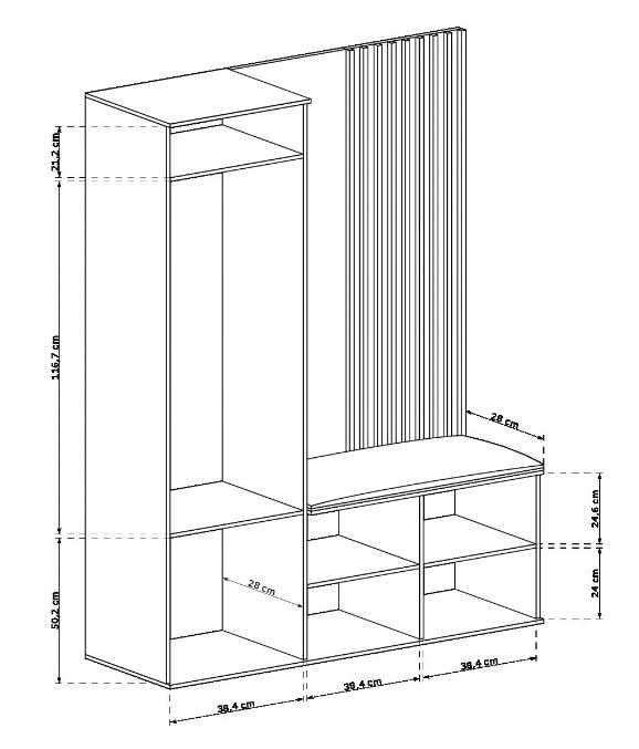 Przedpokój z kolekcji CAMPA to elegancki i funkcjonalny mebel, który doskonale wkomponuje się w każdą przestrzeń wejściową. Charakteryzuje się pojemnymi półkami i praktyczną szufladą, co pozwala na efektywne przechowywanie ubrań oraz akcesoriów. Centralnym elementem jest lustro, które optycznie powiększa przestrzeń i dodaje jej lekkości.