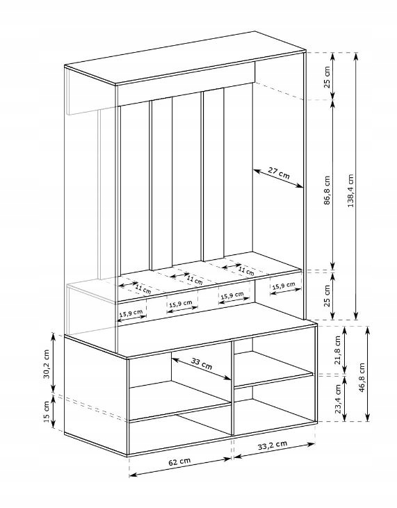 Dzięki kompaktowym wymiarom, idealnie sprawdzi się nawet w niewielkich przestrzeniach. Jego funkcjonalny design został zaprojektowany, aby ułatwić organizację codziennych rzeczy. Lustro umieszczone na ruchomym froncie dodaje nowoczesnego charakteru i optycznie powiększa przestrzeń.