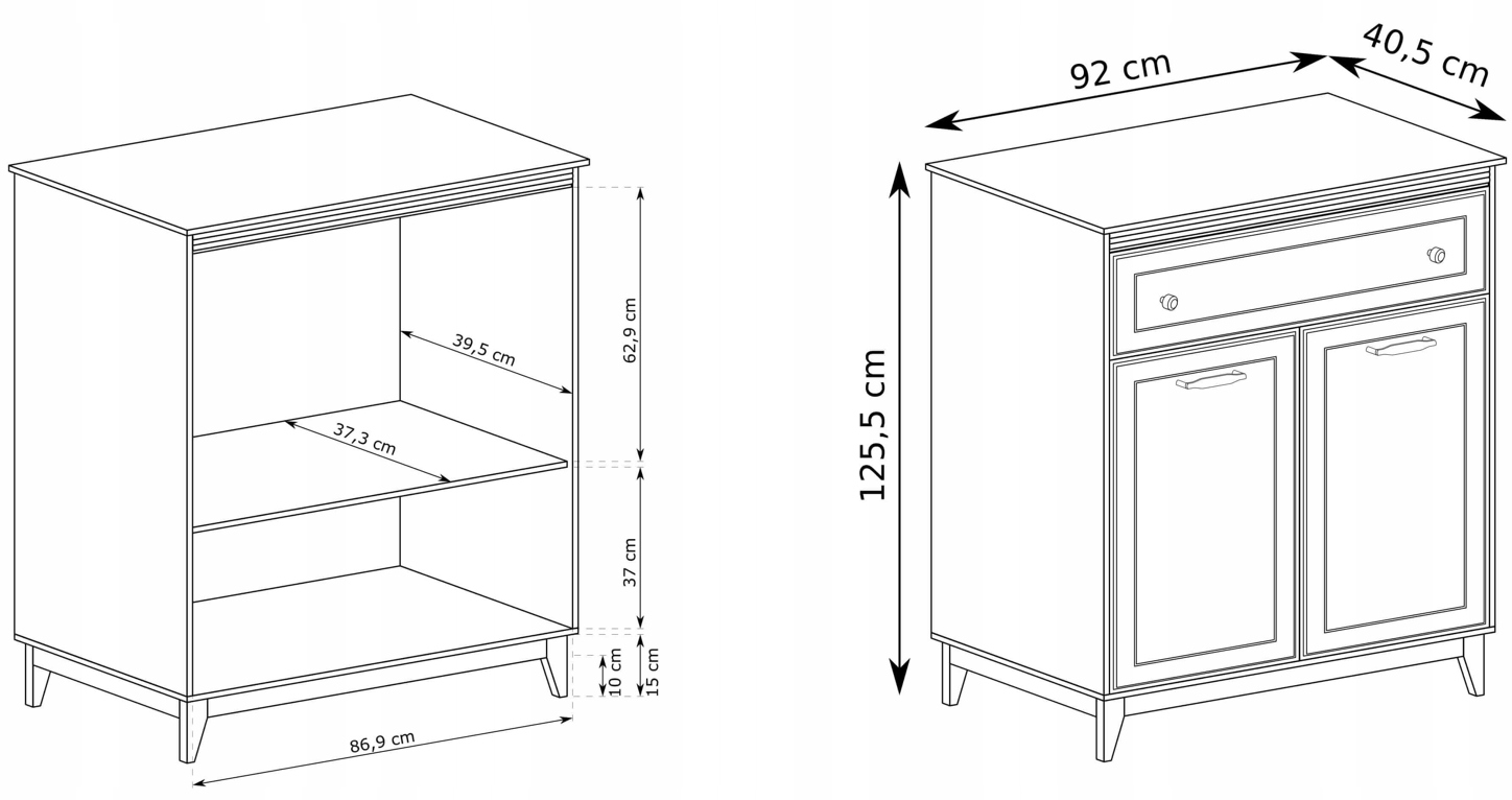 • Komoda WINDSOR 92 2D1S – szerokość: 92 cm, wysokość: 125,5 cm, głębokość: 40,5 cm