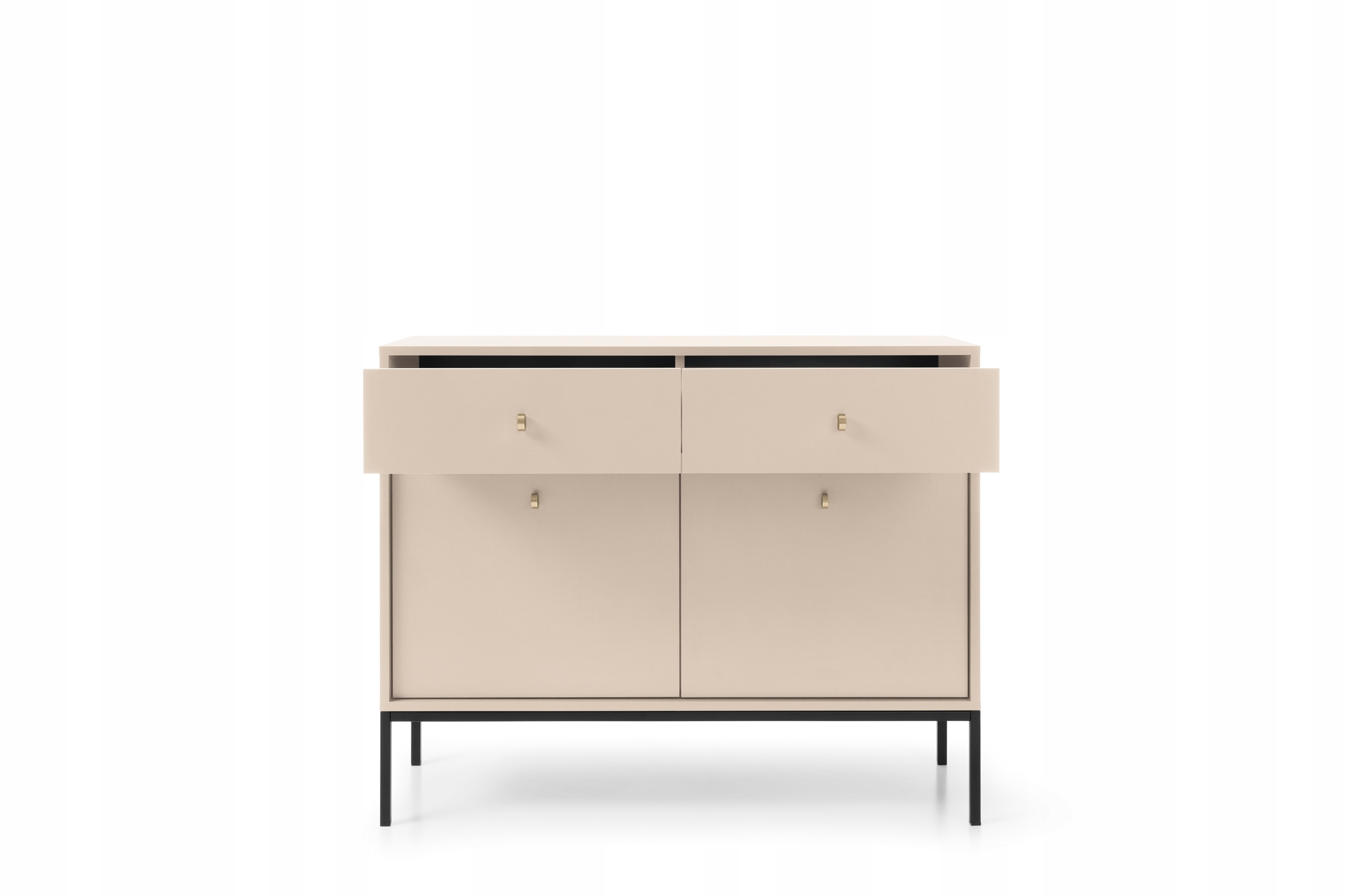 System mebli MONO to doskonała propozycja dla miłośników stylu loftowego w subtelnym, piaskowym wydaniu. Kolekcja przyciąga wzrok beżową kolorystyką, która wprowadza do wnętrza ciepło i nowoczesny charakter. Złote, metalowe uchwyty i wysokie, metalowe nóżki w tym samym odcieniu dodają bryłom wyjątkowego uroku oraz lekkości, idealnie wpisując się w elegancki industrializm.