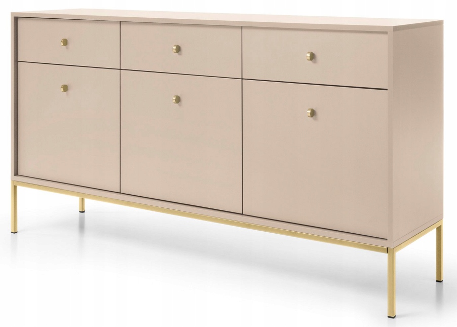 System mebli MONO to doskonała propozycja dla miłośników stylu loftowego w subtelnym, piaskowym wydaniu. Kolekcja przyciąga wzrok beżową kolorystyką, która wprowadza do wnętrza ciepło i nowoczesny charakter. Złote, metalowe uchwyty i wysokie, metalowe nóżki w tym samym odcieniu dodają bryłom wyjątkowego uroku oraz lekkości, idealnie wpisując się w elegancki industrializm.