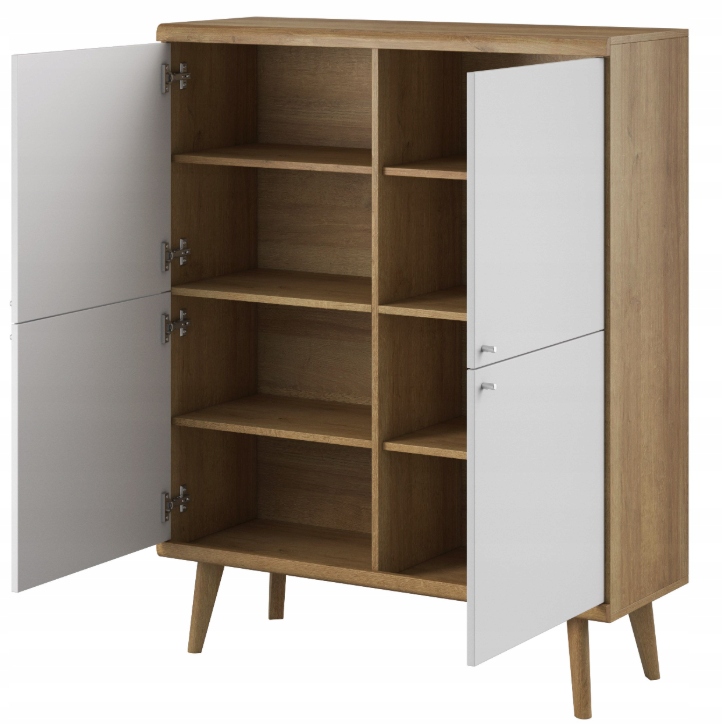 Kolekcja PRIMO to harmonijne połączenie nowoczesnych linii i ciepłych, naturalnych dekorów. Fronty w kolorze białym kontrastują z korpusami w dekorze dąb riviera, tworząc świeży i elegancki zestaw, który doskonale sprawdzi się w salonie, jadalni, sypialni czy biurze. Charakterystycznym elementem kolekcji są dekoracyjne listwy MDF, które podkreślają formę mebli i dodają im wyrazistości.