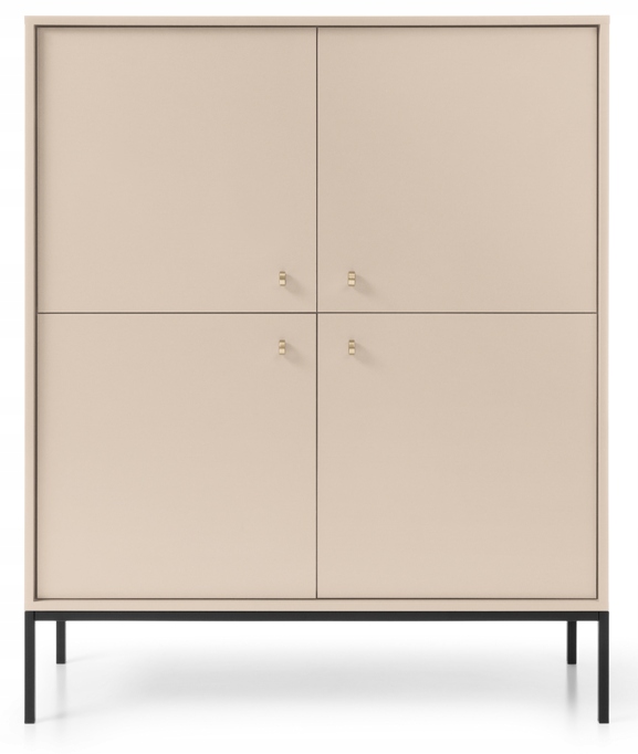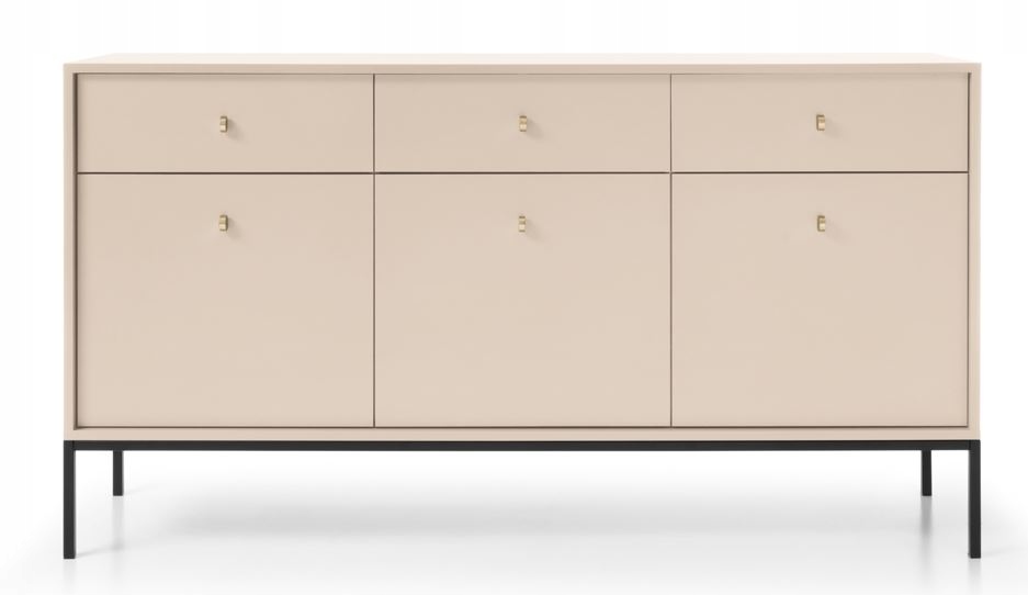 System mebli MONO to doskonała propozycja dla miłośników stylu loftowego w delikatnym, piaskowym wydaniu. Kolekcja wyróżnia się beżową kolorystyką, która wnosi do wnętrza ciepło i subtelność, a kontrastowe połączenie złotych uchwytów z czarnymi, metalowymi nóżkami nadaje bryłom nowoczesnego, wyrazistego charakteru.