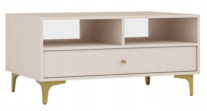 System mebli MONO to doskonała propozycja dla miłośników stylu loftowego w delikatnym, piaskowym wydaniu. Kolekcja wyróżnia się beżową kolorystyką, która wnosi do wnętrza ciepło i subtelność, a kontrastowe połączenie złotych uchwytów z czarnymi, metalowymi nóżkami nadaje bryłom nowoczesnego, wyrazistego charakteru.