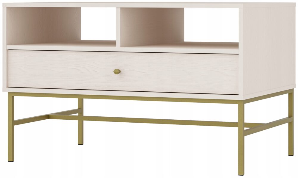 Ława AVILA w kolorze eukaliptusa to idealne rozwiązanie dla osób poszukujących stylowego i funkcjonalnego stolika kawowego do salonu. Wyposażona w praktyczną szufladę oraz dwie półki umieszczone nad nią, oferuje doskonałą przestrzeń do przechowywania i organizacji niezbędnych przedmiotów, takich jak czasopisma, piloty czy dekoracje, jednocześnie zachowując porządek na blacie.