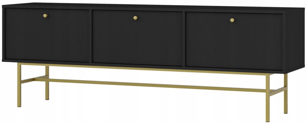 Wyposażona w dwie szuflady i półkę, ta ława zapewnia praktyczne miejsce do przechowywania, pomagając utrzymać porządek w salonie. Wysoka jakość wykonania, wzmocniona obrzeżem ABS, gwarantuje trwałość i odporność na codzienne użytkowanie. Złote uchwyty oraz stalowy stelaż malowany proszkowo podkreślają nowoczesny i elegancki styl mebla.