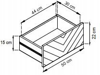 Stolik posiada praktyczną półkę, która ułatwia przechowywanie, oraz dwie szuflady na drobne przedmioty. Stabilność mebla gwarantują metalowe, czarne nóżki, które dodają jej lekkości. Dzięki systemowi PUSH TO OPEN, użytkowanie szuflad jest łatwe i wygodne, podkreślając nowoczesny charakter ławy.