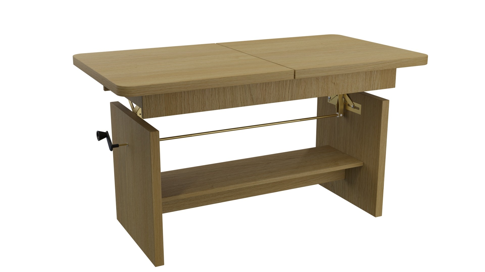 Stabilność zapewnia metalowy automat, a regulacja wysokości odbywa się za pomocą wygodnej korbki, co pozwala na szybkie i proste dostosowanie mebla. Dodatkowym atutem jest praktyczna półka, która umożliwia przechowywanie książek, czasopism i innych drobiazgów, pomagając utrzymać porządek w Twoim wnętrzu.