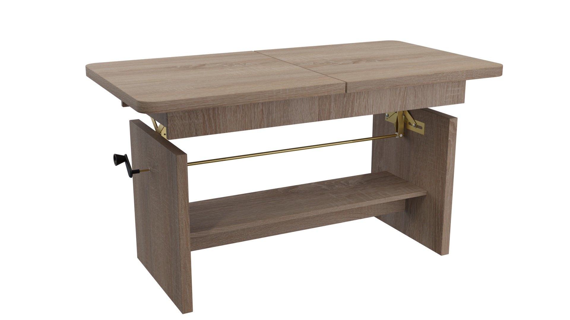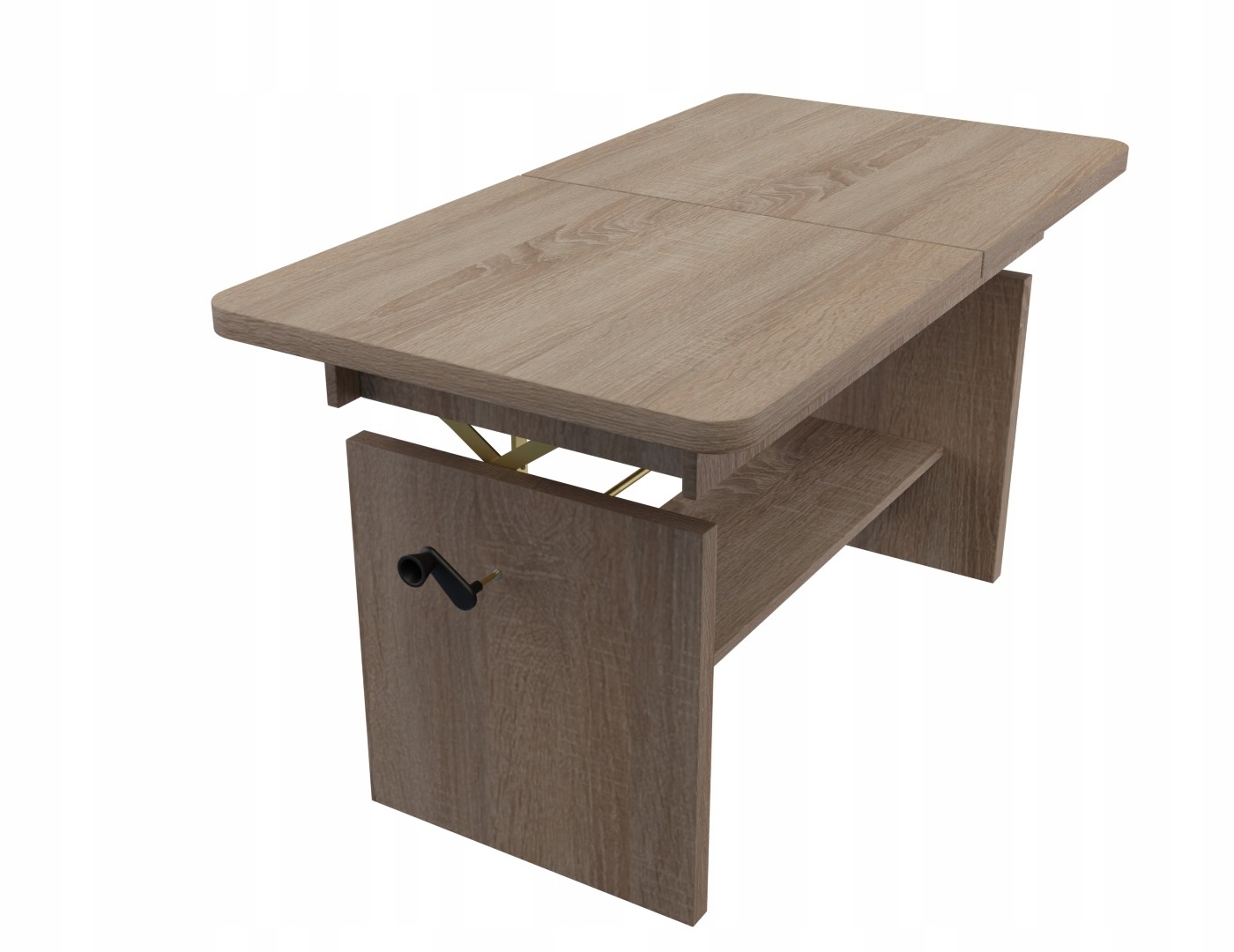 Solidna konstrukcja oparta na metalowym automacie gwarantuje stabilność, a wygodna korbka umożliwia szybką regulację wysokości. Dodatkowo, ława ADA posiada praktyczną półkę do przechowywania drobiazgów, takich jak książki czy piloty, co pozwala na utrzymanie porządku w Twoim wnętrzu.