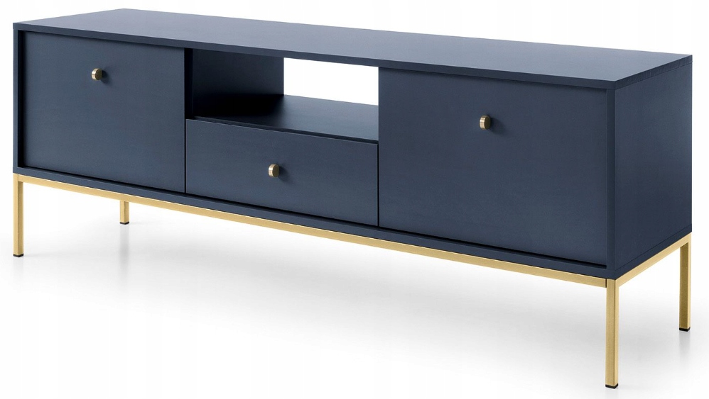 System mebli MONO to doskonała propozycja dla miłośników stylu loftowego w eleganckim, głębokim wydaniu. Kolekcja wyróżnia się granatową kolorystyką, która wnosi do wnętrza wyrafinowanie i styl, a połączenie złotych uchwytów ze złotymi, metalowymi nóżkami nadaje bryłom nowoczesnego, luksusowego charakteru.