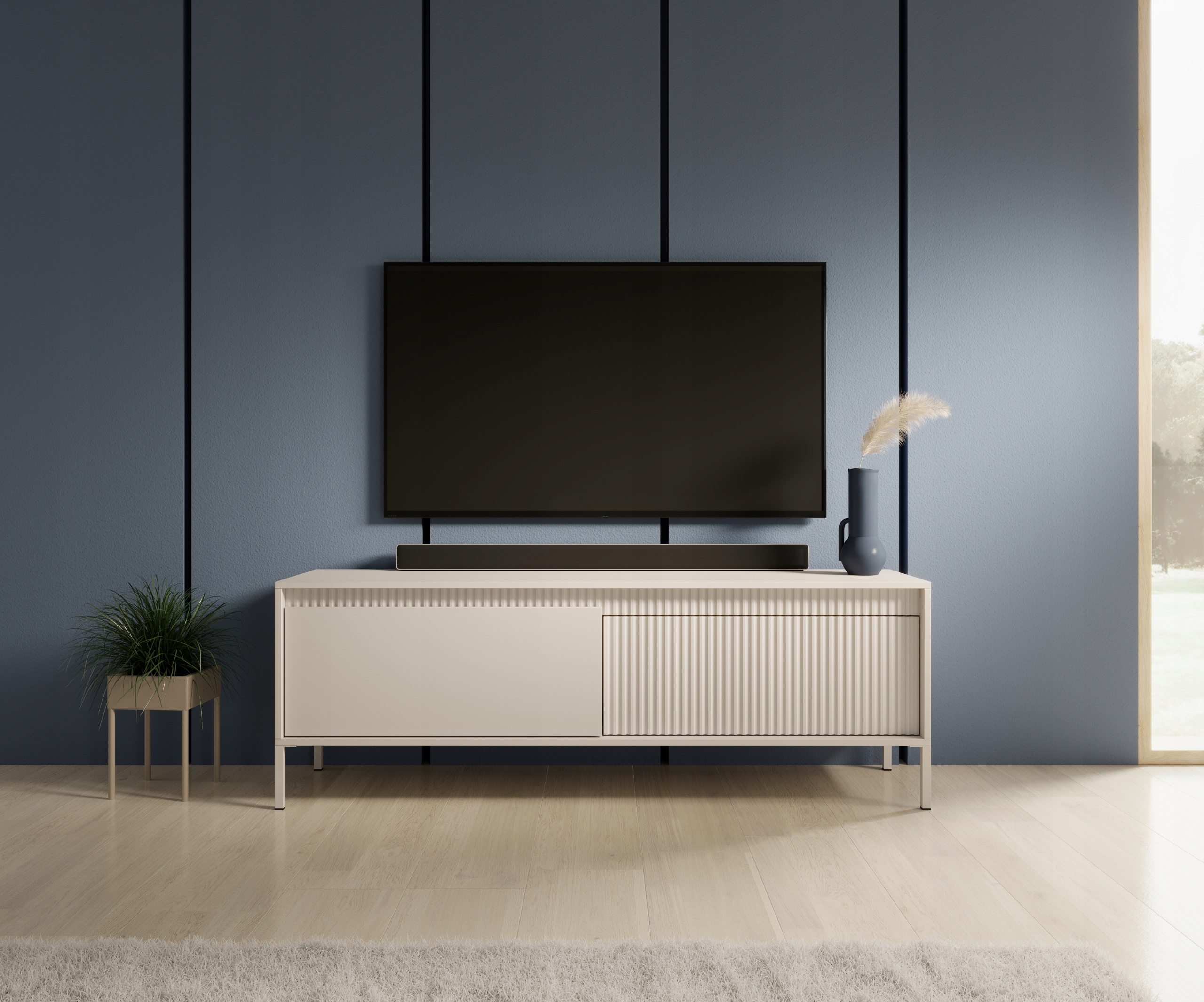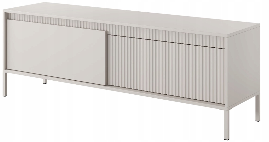Szafka RTV z kolekcji SENSO to połączenie elegancji i funkcjonalności w nowoczesnym, minimalistycznym wydaniu. Fronty o wykończeniu gładkim i ryflowanym w odcieniu beżowym tworzą spójną, harmonijną całość, która idealnie dopełni przestrzeń salonu, nadając jej wyrafinowanego, ale nieprzesadzonego stylu.