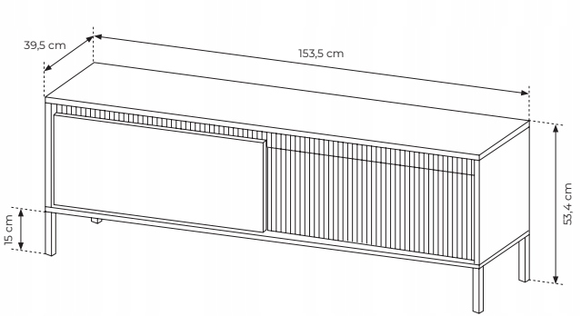 Szafka została wykonana z płyty laminowanej E05 oraz MDF, z krawędziami zabezpieczonymi obrzeżem ABS. Materiały te gwarantują trwałość i odporność na codzienne użytkowanie. Przemyślany układ wnętrza zapewnia przestrzeń do przechowywania urządzeń i akcesoriów RTV, łącząc estetykę z praktycznością.