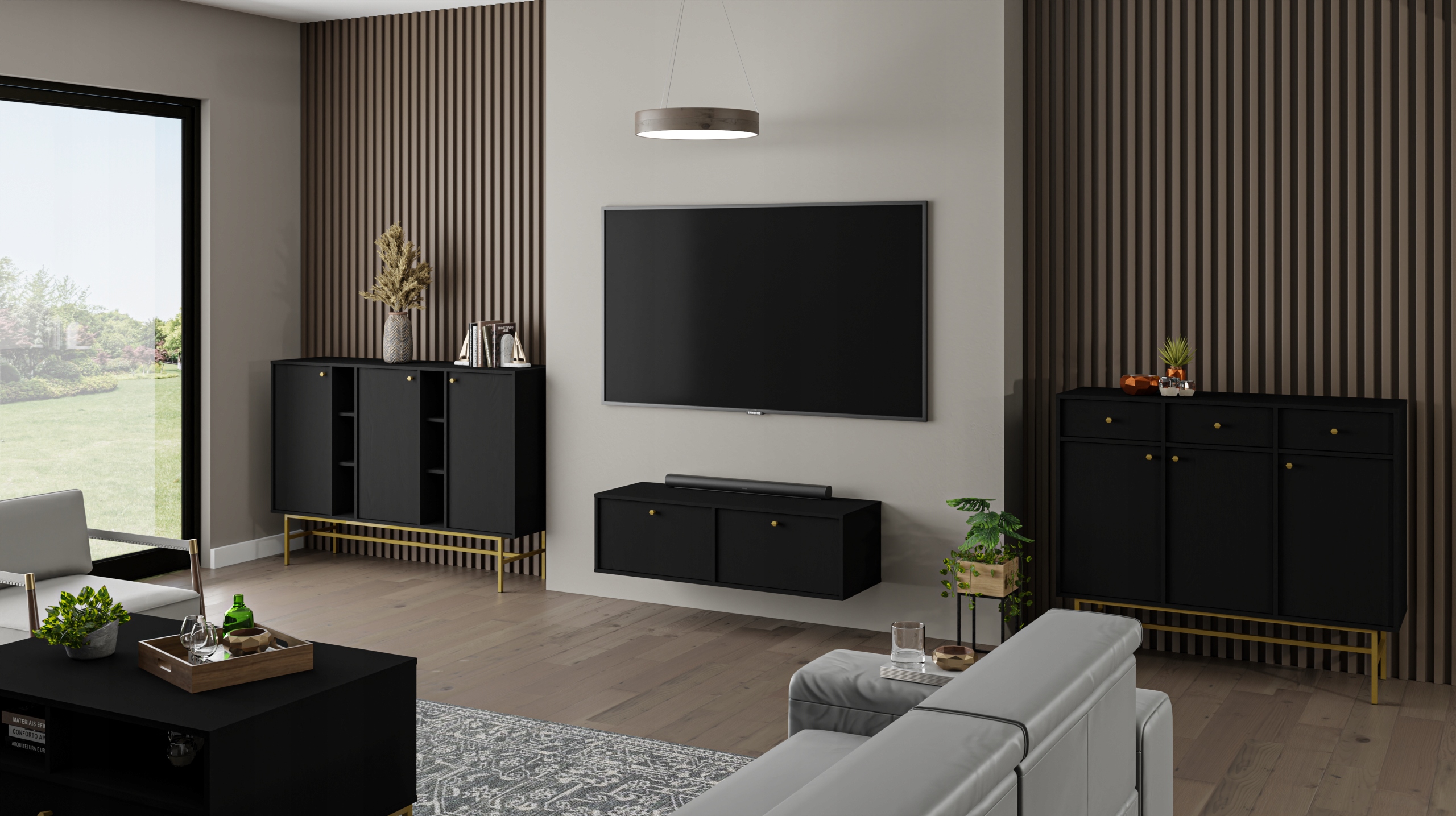 Wykonana w odcieniu czarnego grafitu z eleganckimi złotymi metalowymi uchwytami, szafka dodaje wnętrzu luksusowego charakteru i wyjątkowego stylu. Dzięki płycie laminowanej o grubości 16 mm i zabezpieczonym obrzeżom ABS, mebel jest odporny na codzienne użytkowanie i łatwy do utrzymania w czystości.