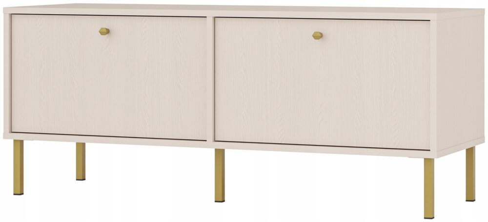 Szafka RTV AVILA to stylowy wybór dla osób ceniących elegancki design i praktyczne rozwiązania. Ta kompaktowa szafka pod telewizor o szerokości 120 cm idealnie pasuje do nowoczesnych wnętrz, łącząc funkcjonalność z estetyką. Wyposażona w dwie klapy, pozwala na wygodne przechowywanie sprzętu multimedialnego, jednocześnie zapewniając łatwy dostęp do niezbędnych akcesoriów.