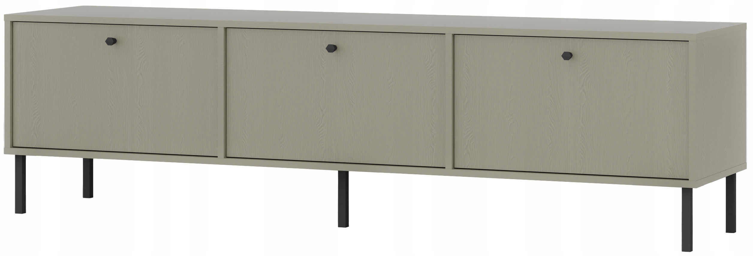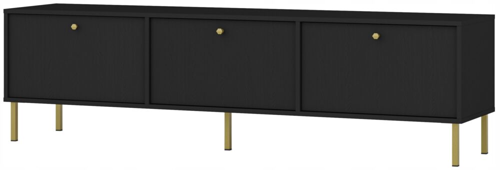 Szafka pod telewizor AVILA została zaprojektowana z dbałością o każdy szczegół. Czarne, metalowe nóżki i uchwyty nadają jej wyrazistości i elegancji, a solidna konstrukcja gwarantuje stabilność oraz trwałość na długie lata. Krawędzie zabezpieczone obrzeżem ABS podkreślają jej wysoką jakość i odporność na codzienne użytkowanie. Delikatna struktura drewna na froncie dodaje ciepła i naturalnego charakteru, tworząc przytulną atmosferę w każdym salonie.