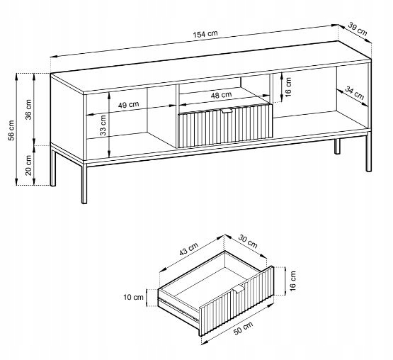 Szafka RTV wyposażona jest w szufladę, półkę oraz drzwiczki, które oferują dużo miejsca do przechowywania sprzętu RTV i akcesoriów, pomagając w utrzymaniu porządku. Jej praktyczne wymiary pozwalają na umieszczenie jej w różnych przestrzeniach, zapewniając zarówno estetykę, jak i funkcjonalność.